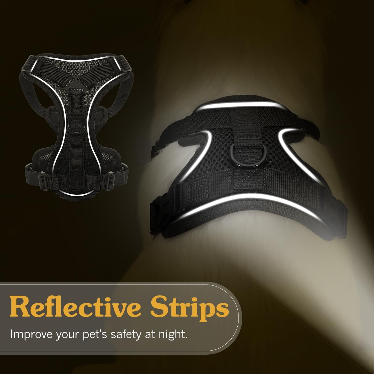 Комплект котешки нагръдник и каишка за разходки, предпазен от бягство жилетка за котенца със светлоотразителна лента, регулируема предпазна жилетка за домашни любимци за котки, кученца, размер L, черен