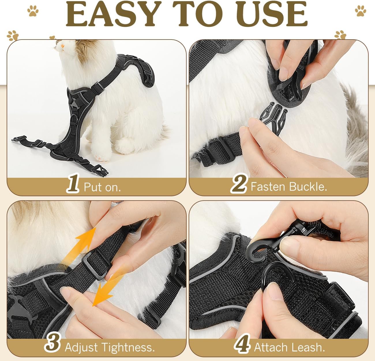 • Нагръдник за котки, предпазващ от бягство: Нагръдникът за котенца е подобрен в областта на врата и гърдите. Регулирането в 4 позиции гарантира, че жилетката не се разкъсва лесно. Като същевременно се гарантира, че врата и предмишницата на домашния любимец имат достатъчна свобода на движение, размерите на врата и гърдите в двата края могат да се регулират според подходящото състояние. Доставя се със здрава каишка, подходяща за ежедневни разходки, джогинг, тренировки и др.