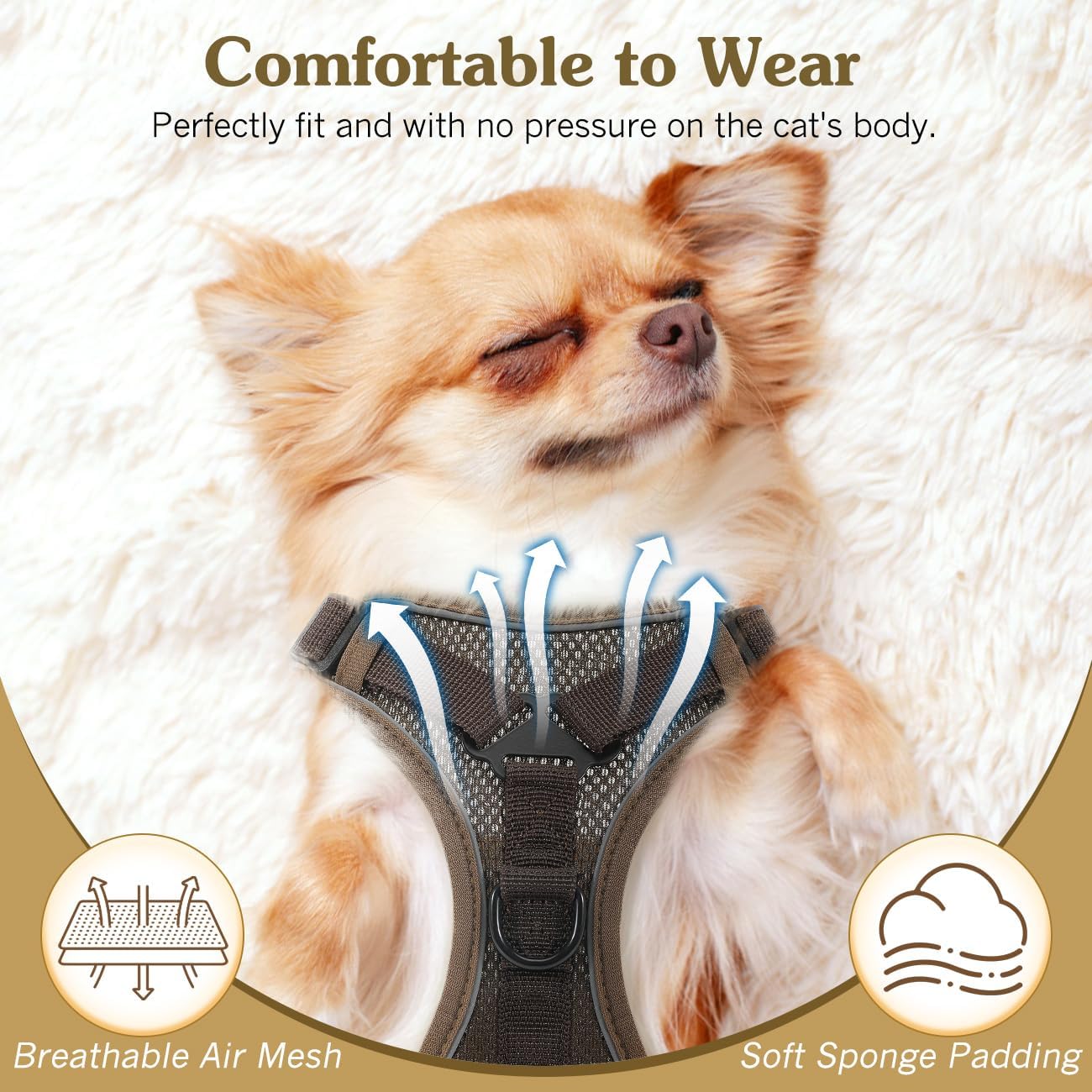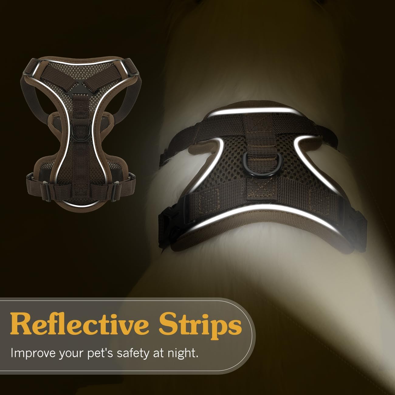 Комплект котешки нагръдник и каишка за разходки, регулируем нагръдник за котенца, дишаща мрежа със светлоотразителни ленти, мека жилетка за безопасност на домашни любимци за котки, котенца, кученца, XL, кафе