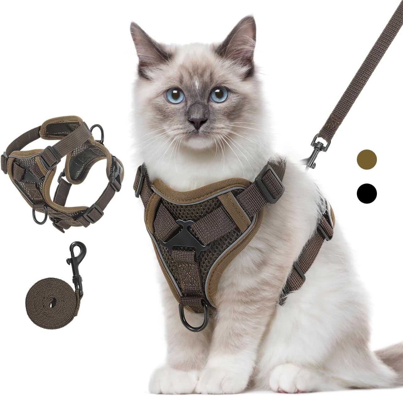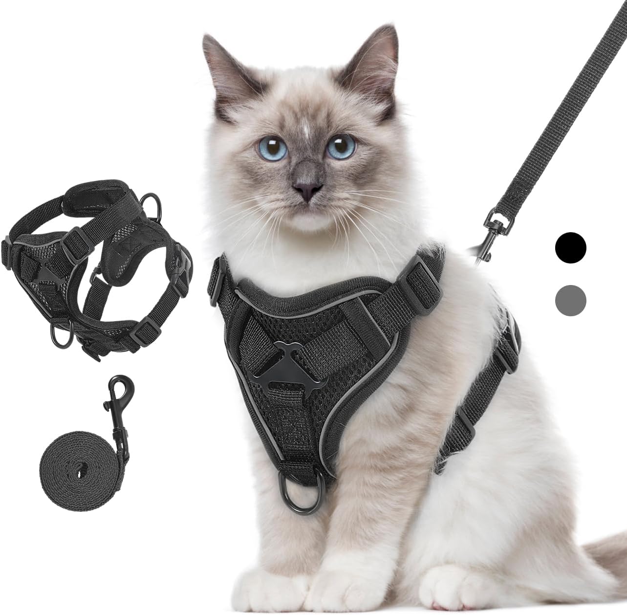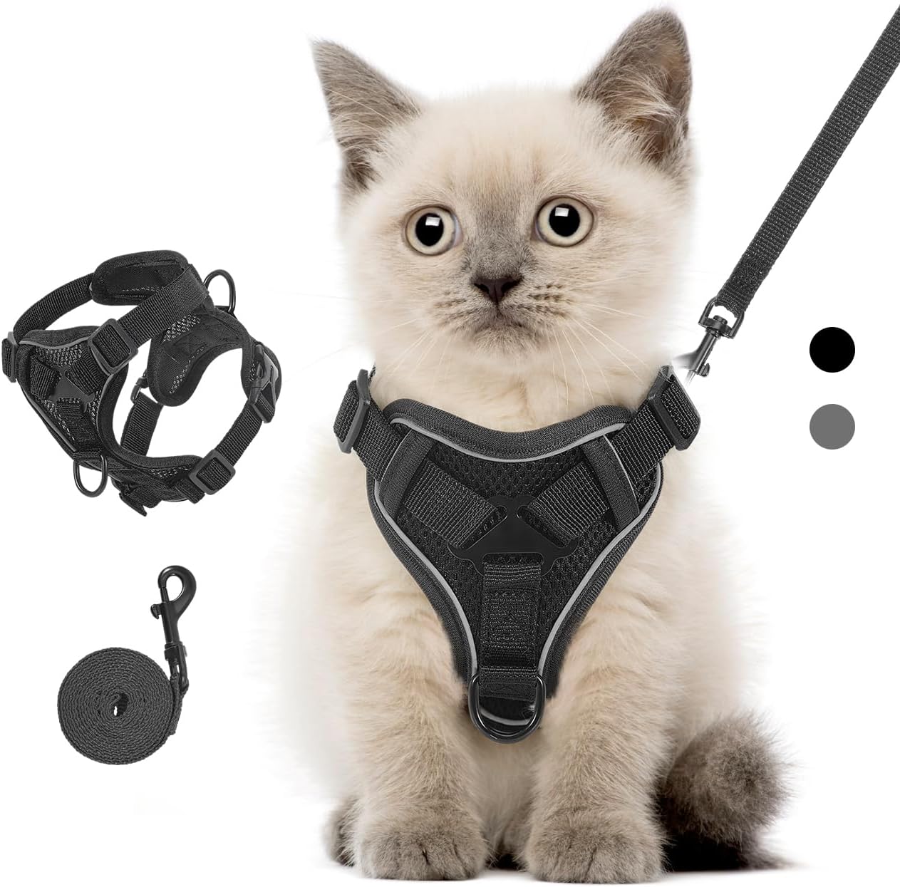 Комплект котешки нагръдник и каишка за разходки, регулируем нагръдник за котенца със светлоотразителна лента, предпазен жилет за домашни любимци, предпазващ от бягство, за котки, кученца, размер S, черен