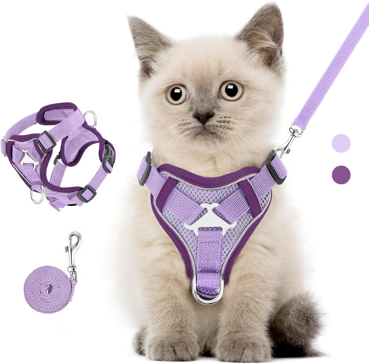 • По-безопасно и лесно за управление: светлоотразителните ленти са предназначени да гарантират безопасността на дейностите на вашата котка на открито през нощта. Към повода може да се прикрепи регулируем нагръдник за котенца с 2 здрави D-образни пръстена, което улеснява воденето на домашния любимец, предотвратява бягството му и осигурява свобода на движение. Дизайнът на жилетката разпределя налягането на повода равномерно по гърдите и раменете, за да предотврати задавяне или напрежение във врата.