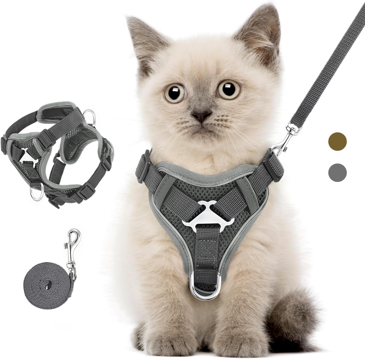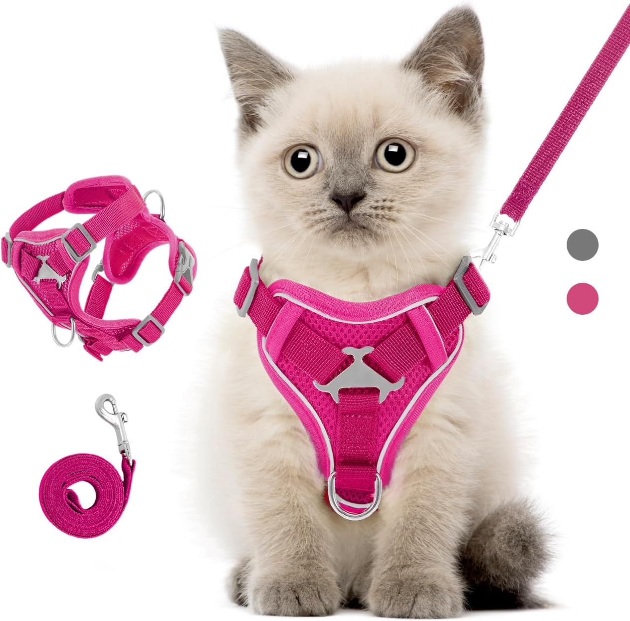 • Нагръдник за котки, предпазващ от бягство: Нагръдникът за котенца е подобрен в областта на врата и гърдите. Регулирането в 4 позиции гарантира, че жилетката не се разкъсва лесно. Като същевременно се гарантира, че врата и предмишницата на домашния любимец имат достатъчна свобода на движение, размерите на врата и гърдите в двата края могат да се регулират според подходящото състояние. Доставя се със здрава каишка, подходяща за ежедневни разходки, джогинг, тренировки и др.