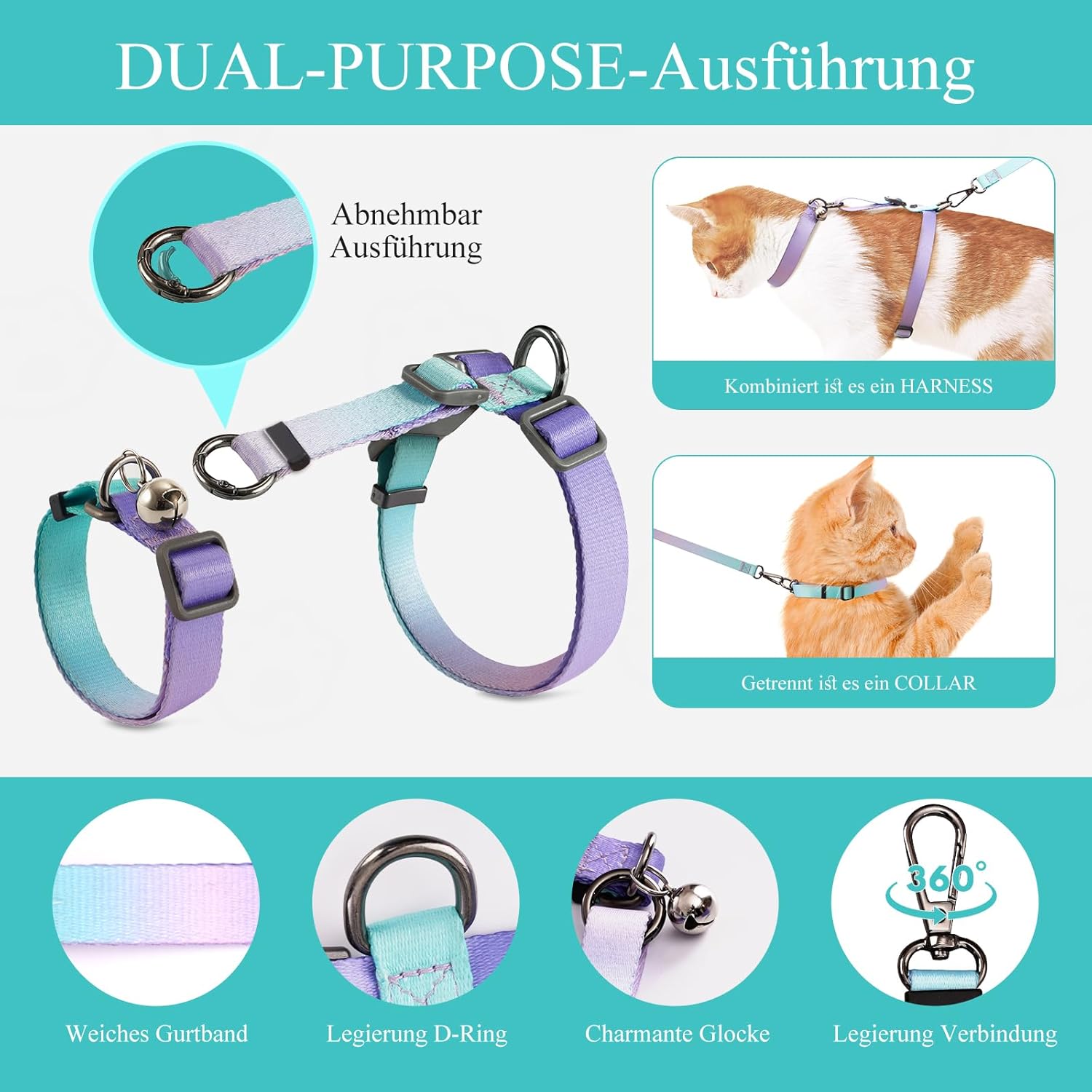 Anpassbares Harnes-Set, entwickelt für alle Katergrößen,perfekt für große und kleine Katzen.