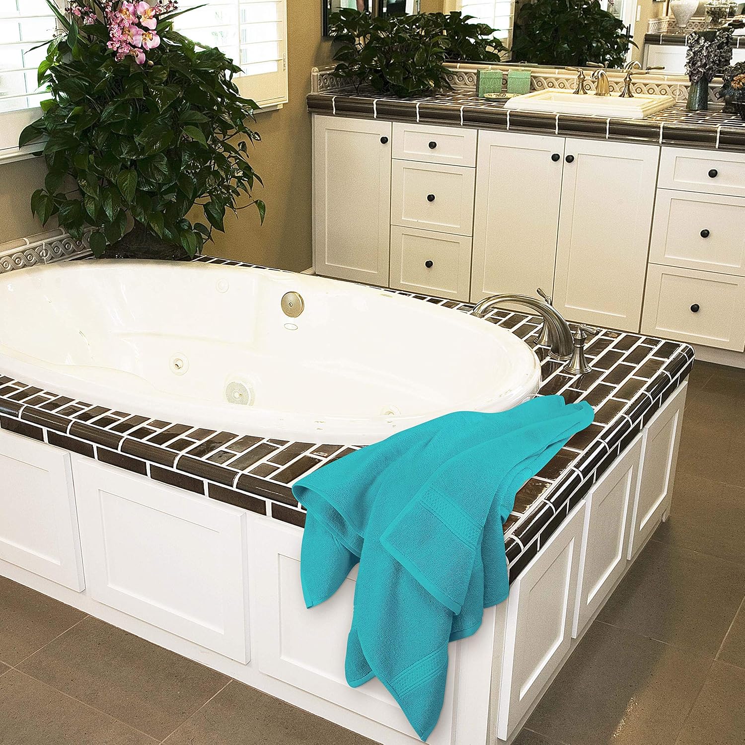 Поглезете се със 100% памучна хавлиена кърпа, изработена от мек и издръжлив хавлиен плат с пръстеновидно предене. Всяка кърпа за баня осигурява оптимално покритие, абсорбция и гъвкавост. Използвайте я на плажа или басейна като аксесоар за почивка или се поглезете с кърпи със спа качество у дома. Голямата кърпа за баня с размери 69 x 137 см е изключително абсорбираща и практична за бързо съхнене, достатъчно покритие или удобно лежане. Професионално подгънатите краища са внимателно обработени, за да се подобри качеството и издръжливостта на кърпата. Кърпите са силно абсорбиращи и остават меки дори след няколко цикъла на пране и сушене.