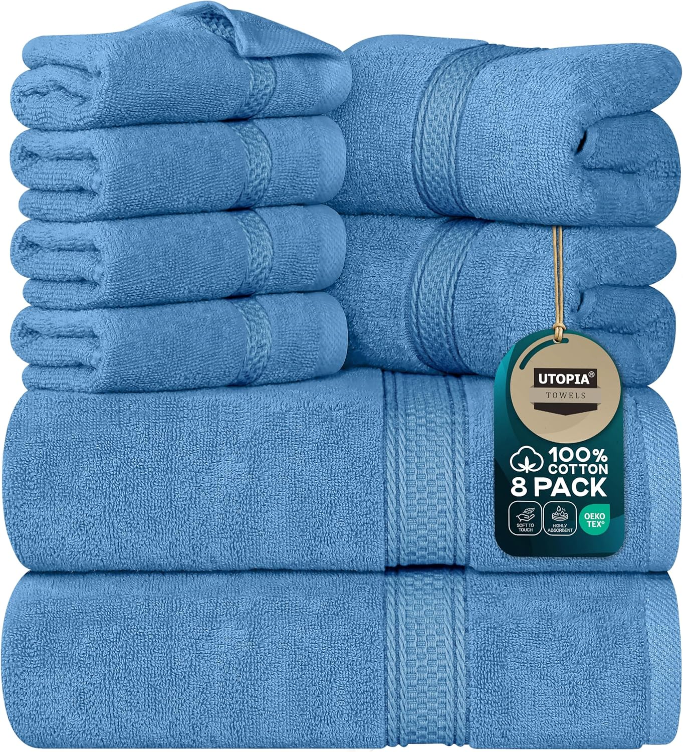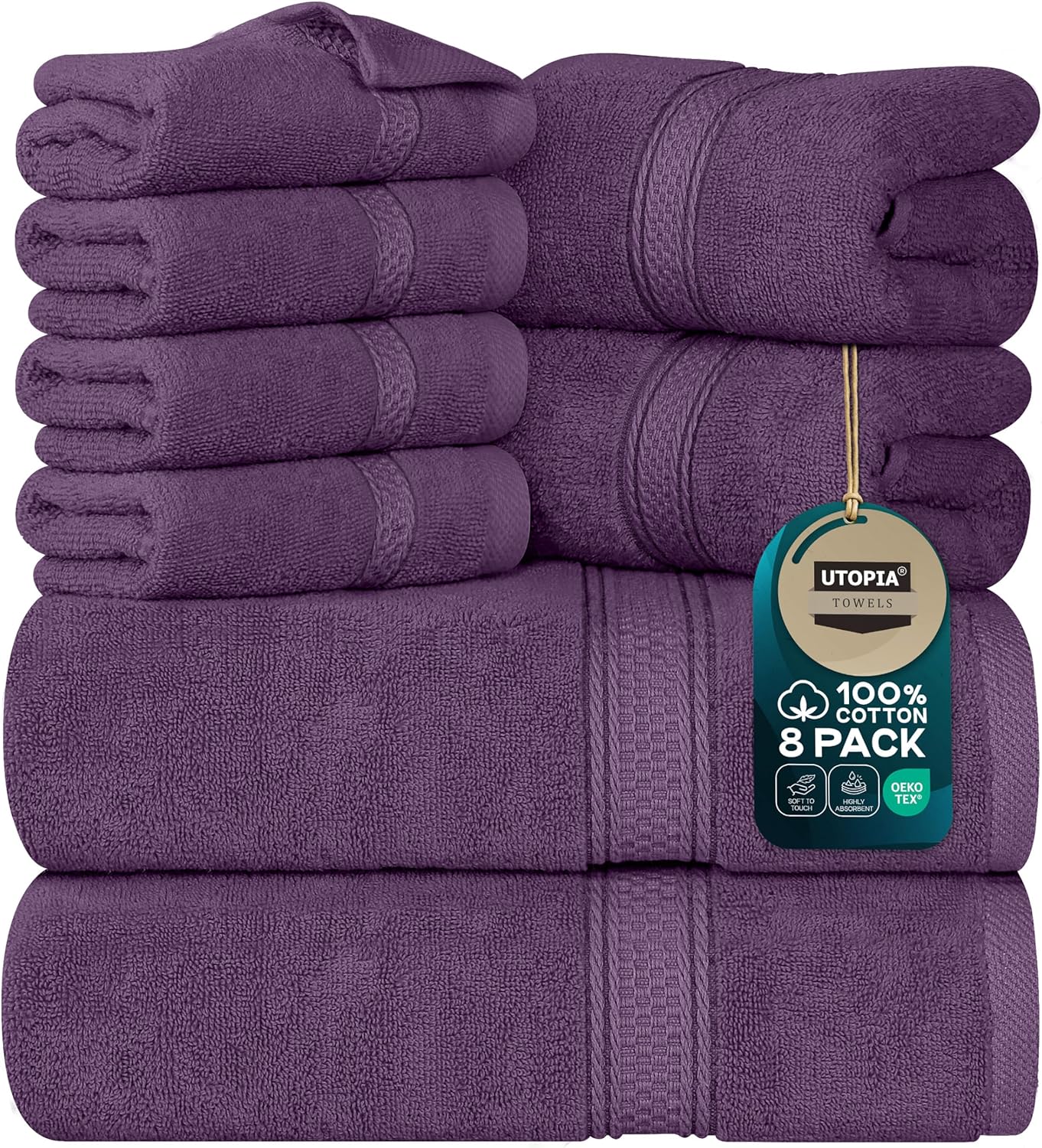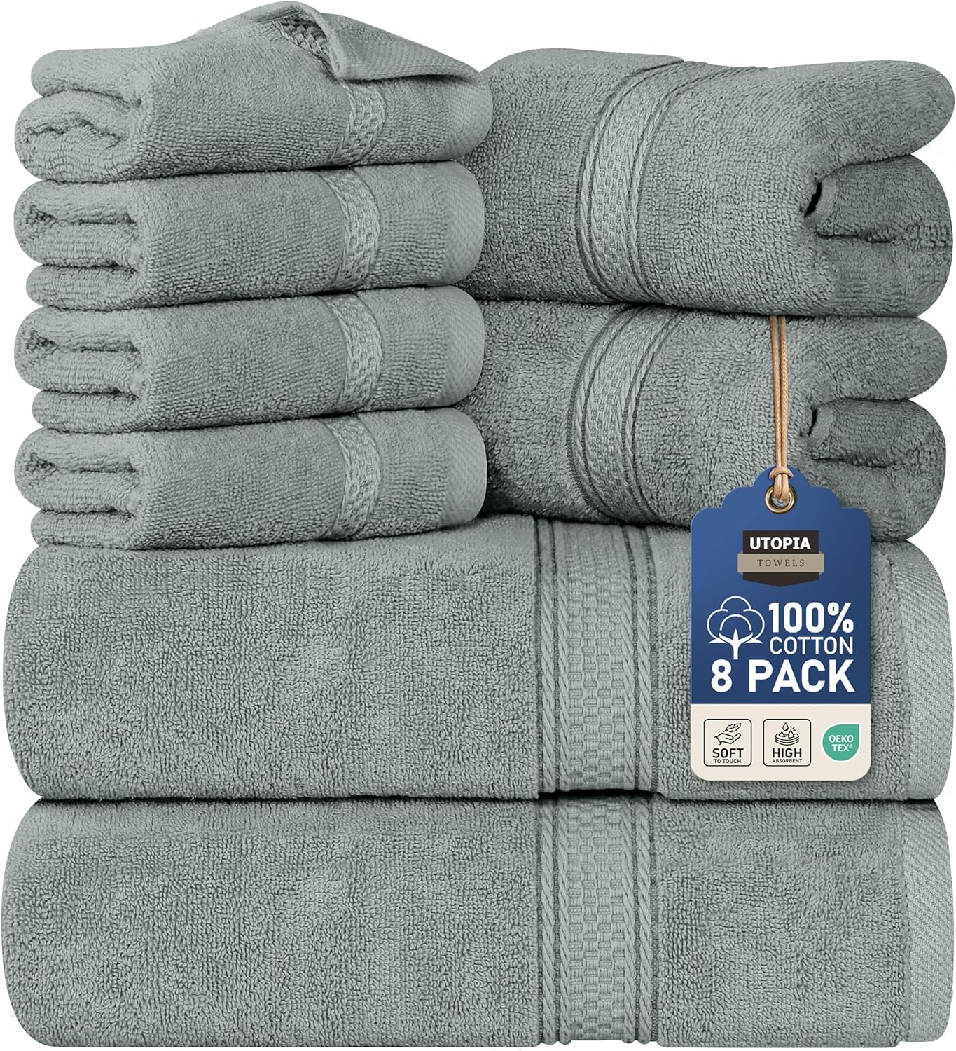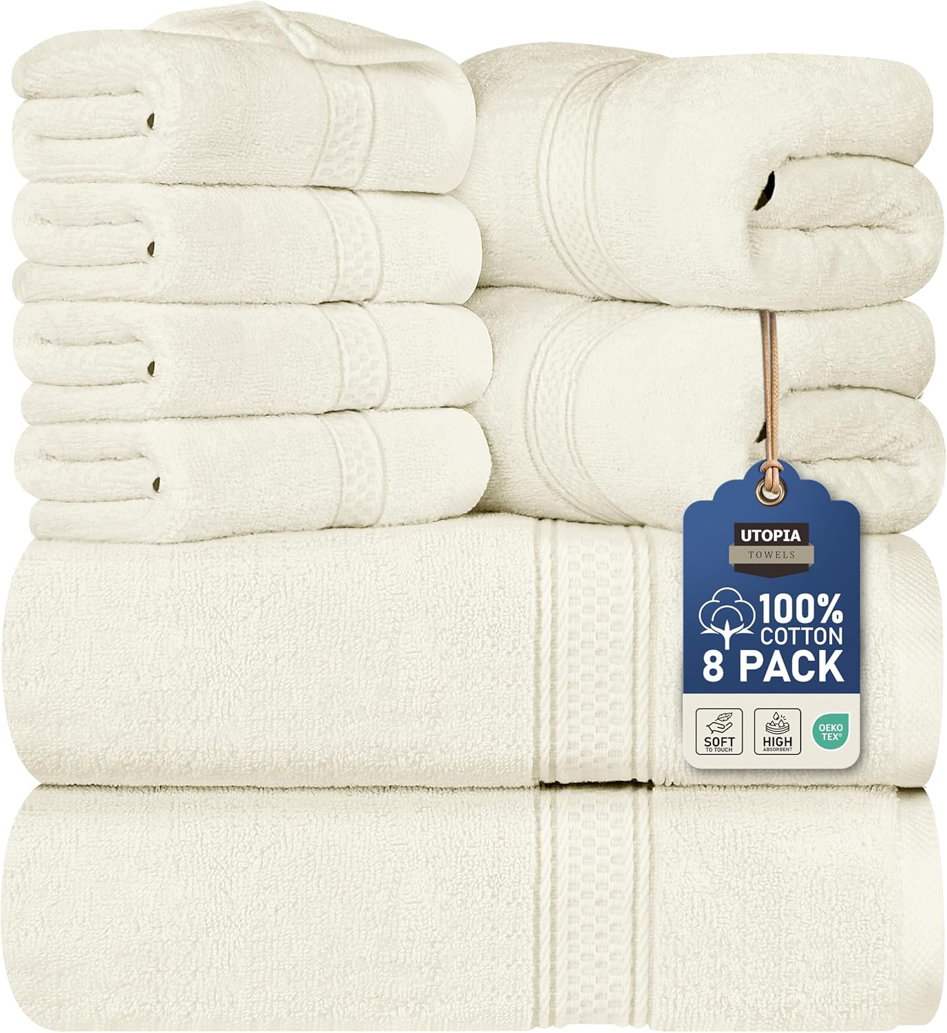 Този комплект от 8 първокласни кърпи от Utopia Towels предлага пълен пакет от четири кърпи за лице, две кърпи за баня и две кърпи за ръце, за да отговори на всички ваши нужди. Комплектът осигурява меко и пухкаво усещане при подсушаване на ръцете и лицето. Нашите кърпи и кърпи за баня ви поддържат чисти и сухи, като същевременно подобряват вида на вашата баня.