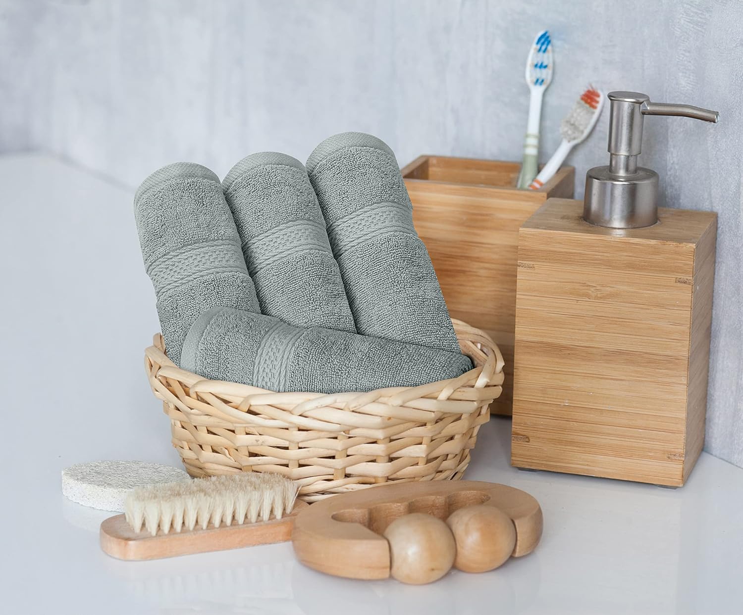 Този комплект от 8 първокласни кърпи от Utopia Towels предлага пълен пакет от четири кърпи за лице, две кърпи за баня и две кърпи за ръце, за да отговори на всички ваши нужди. Комплектът осигурява меко и пухкаво усещане при подсушаване на ръцете и лицето. Нашите кърпи и кърпи за баня ви поддържат чисти и сухи, като същевременно подобряват вида на вашата баня.