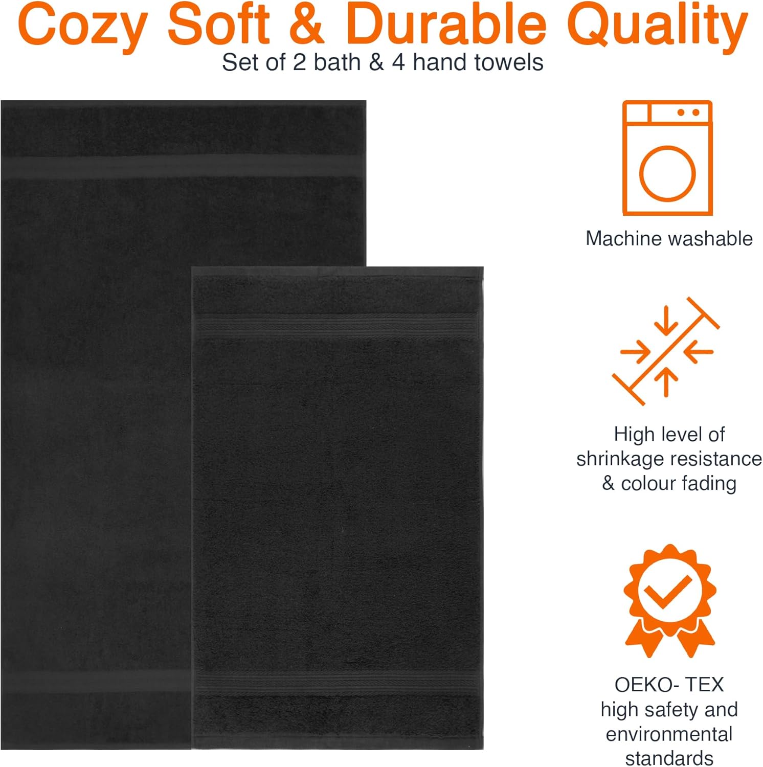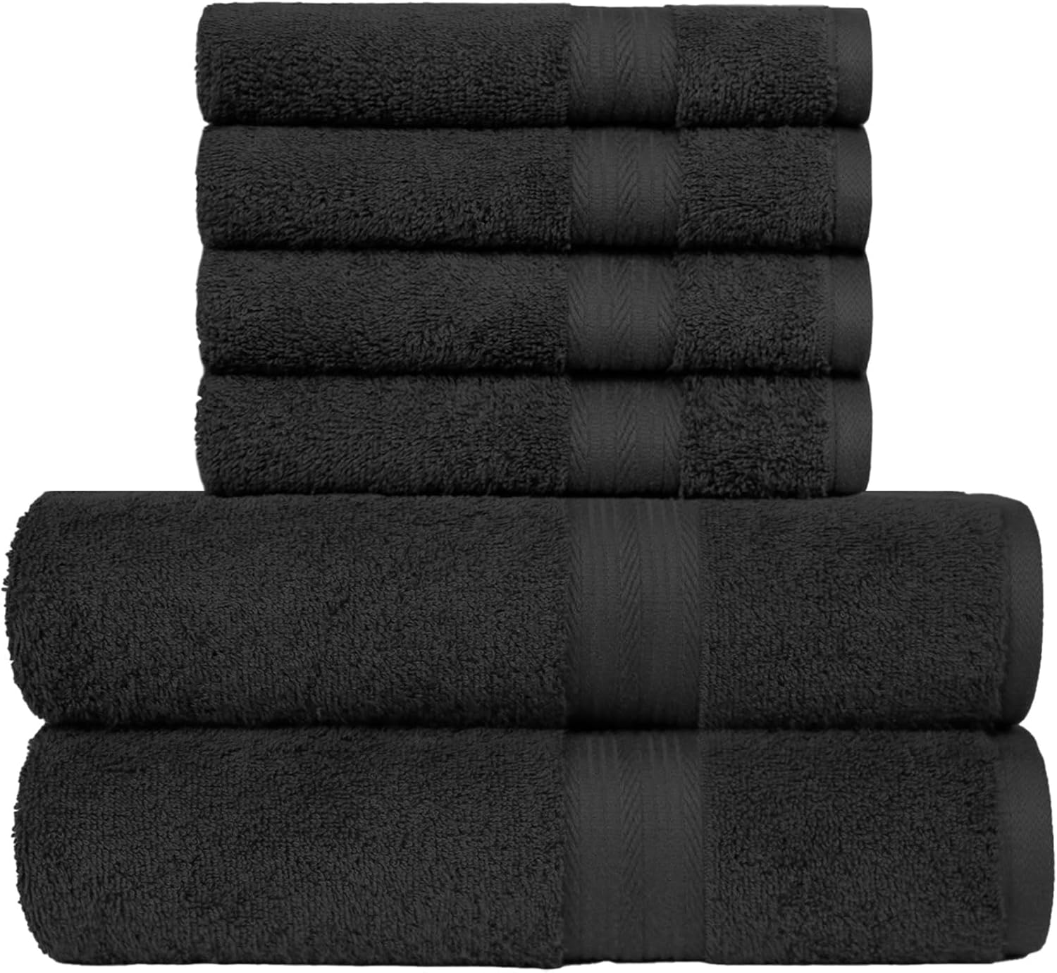 Комплект кърпи за баня и ръце Amazon Basics, устойчиви на избледняване - черен