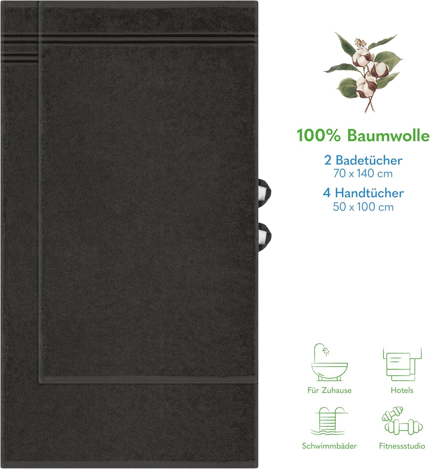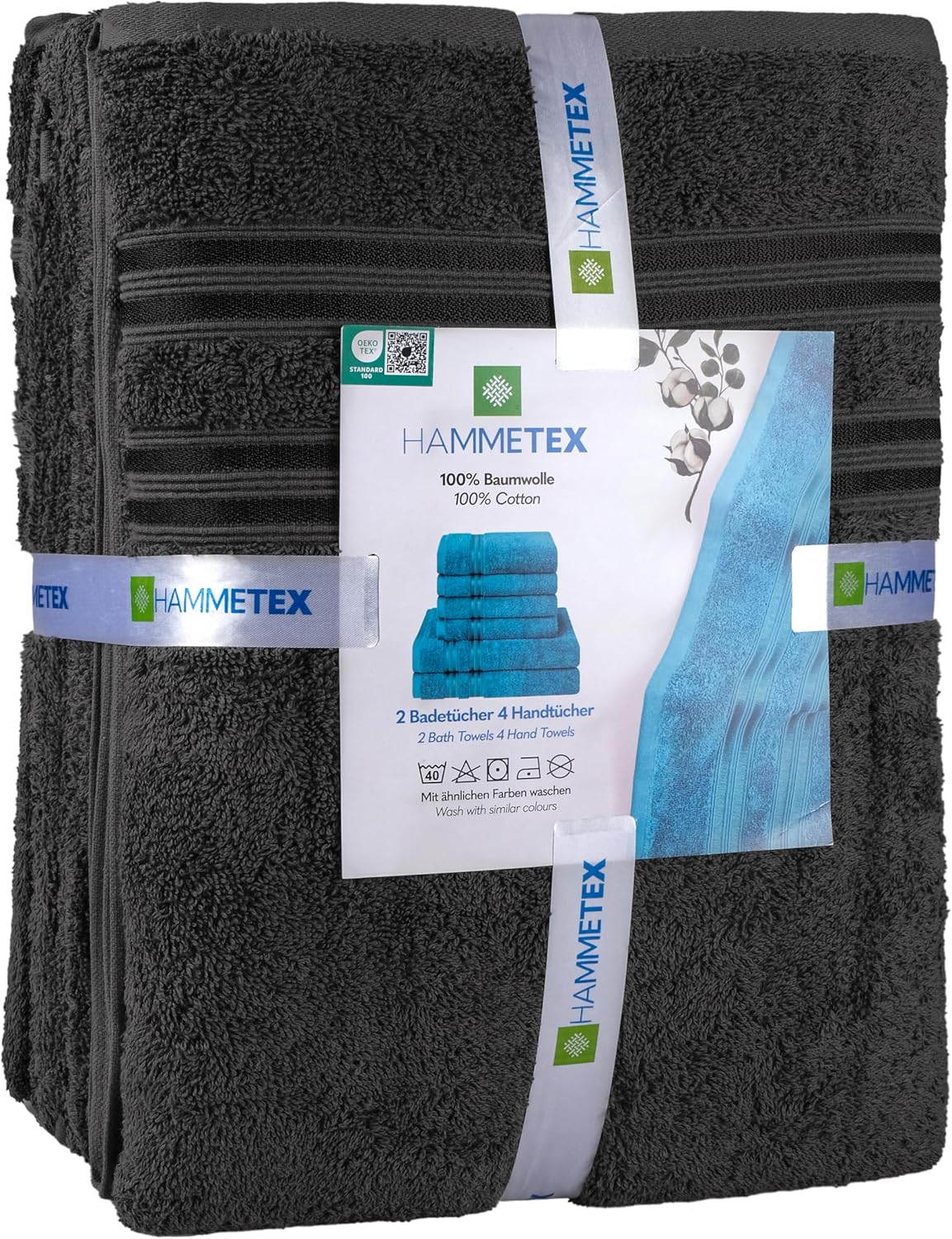 Комплект кърпи HAMMETEX от 6 части – Изработени от 100% първокласен турски памук (500 GSM) за несравнима мекота, абсорбция и издръжливост. Идеални за баня, спа център, сауна или за гости – съчетание от лукс и функционалност.