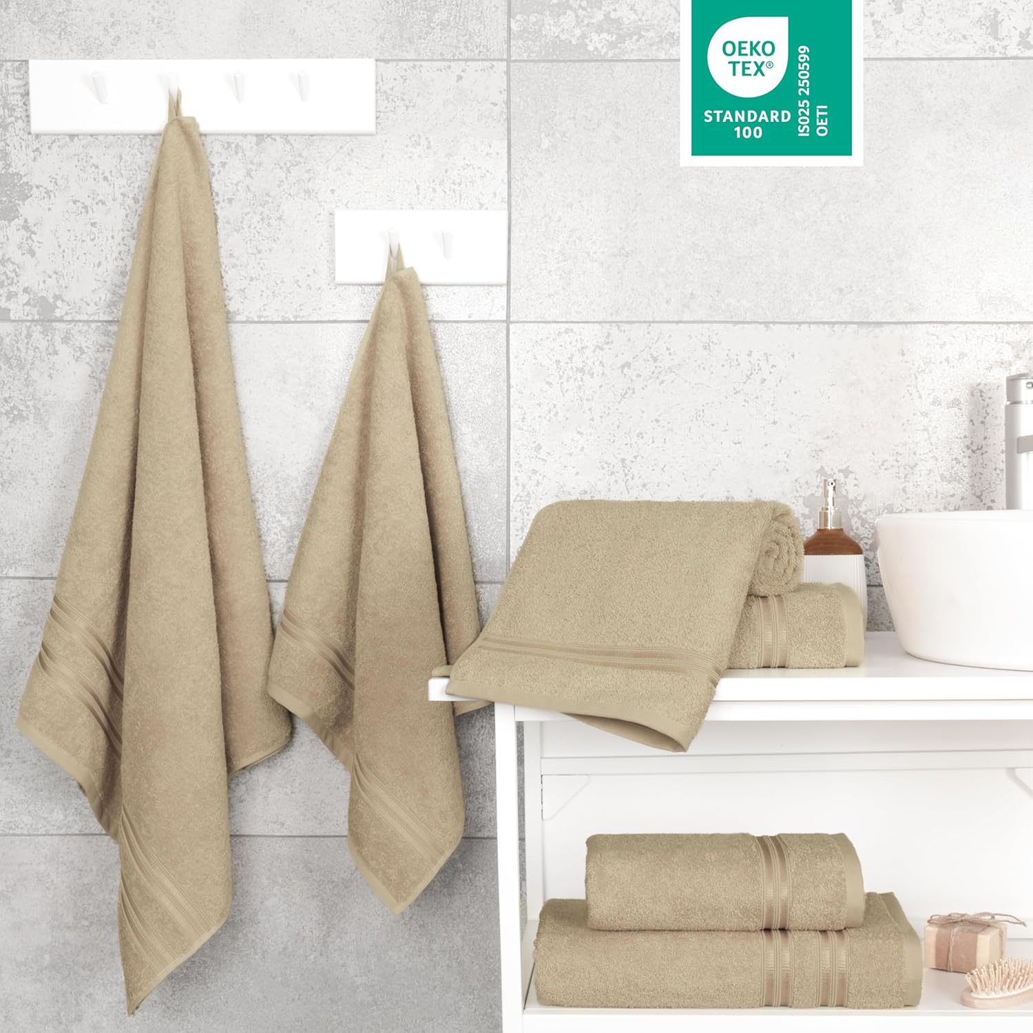 Открийте комплекта HAMMETEX: 2 големи кърпи за баня (70x140 см) и 4 кърпи за ръце (50x100 см). Изработени от фин турски памук за комфорт и функционалност – идеални за ежедневна употреба или специални поводи.