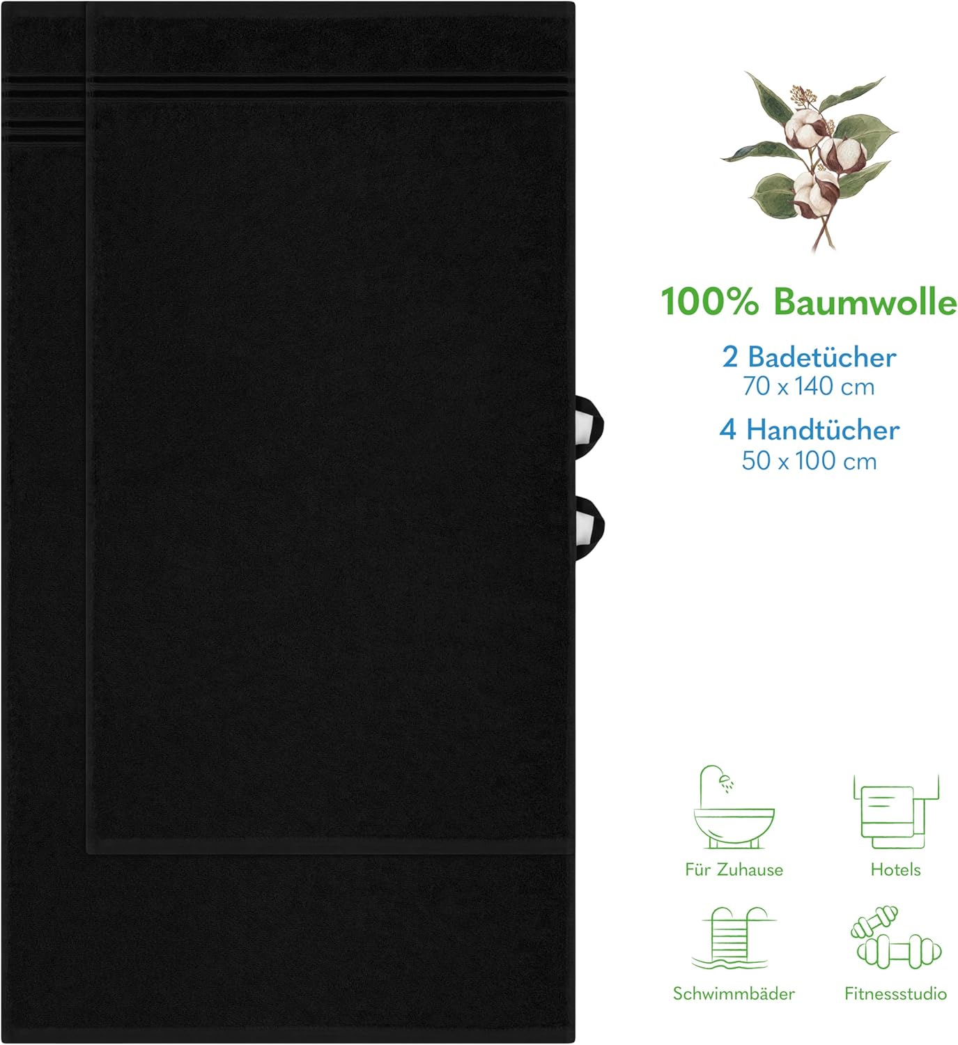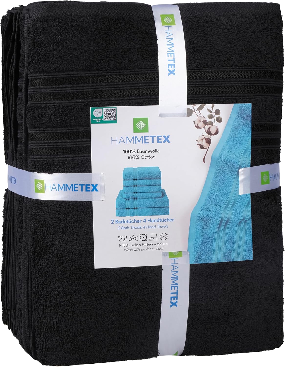 Открийте комплекта HAMMETEX: 2 големи кърпи за баня (70x140 см) и 4 кърпи за ръце (50x100 см). Изработени от фин турски памук за комфорт и функционалност – идеални за ежедневна употреба или специални поводи.