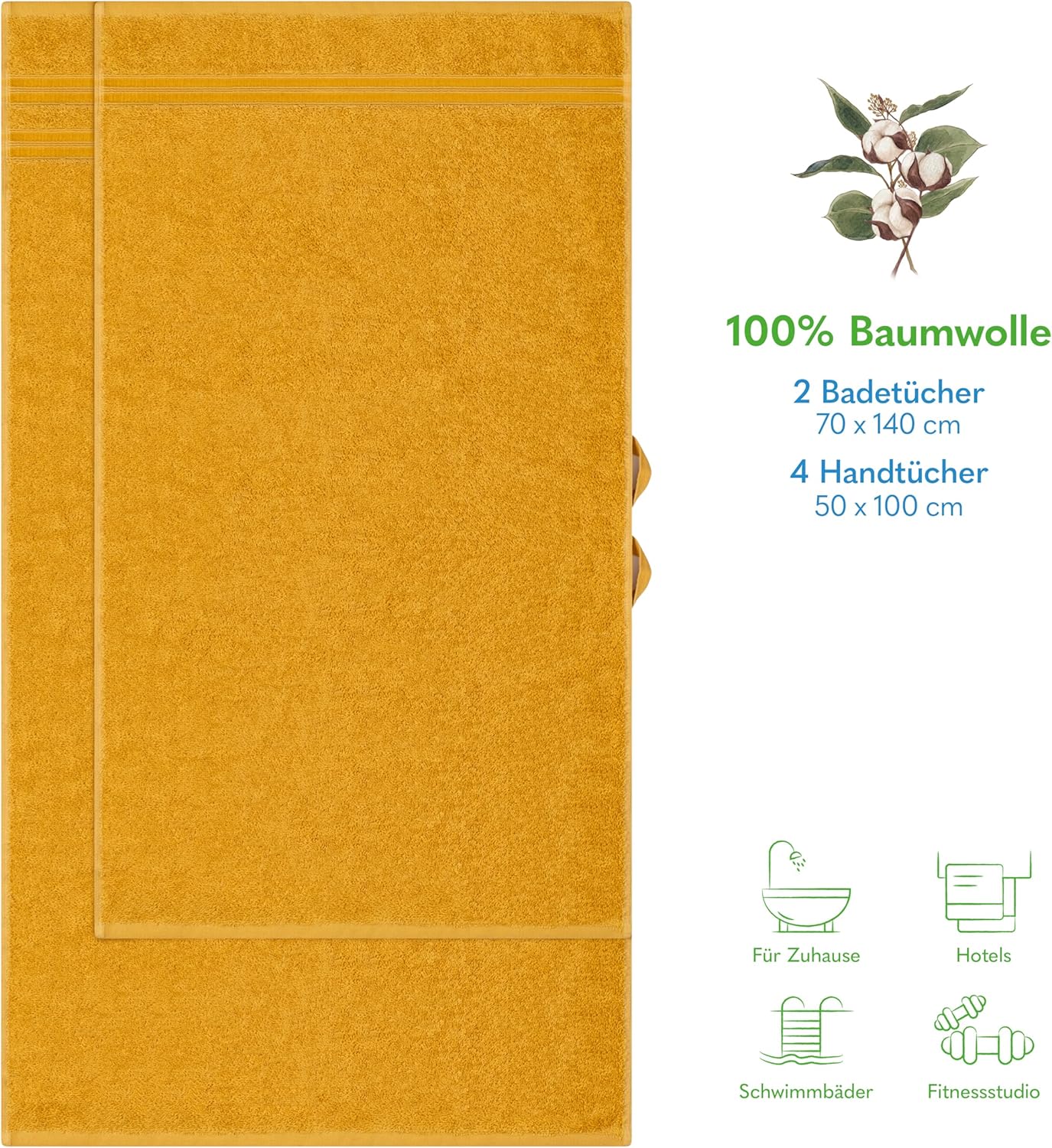 Открийте комплекта HAMMETEX: 2 големи кърпи за баня (70x140 см) и 4 кърпи за ръце (50x100 см). Изработени от фин турски памук за комфорт и функционалност – идеални за ежедневна употреба или специални поводи.