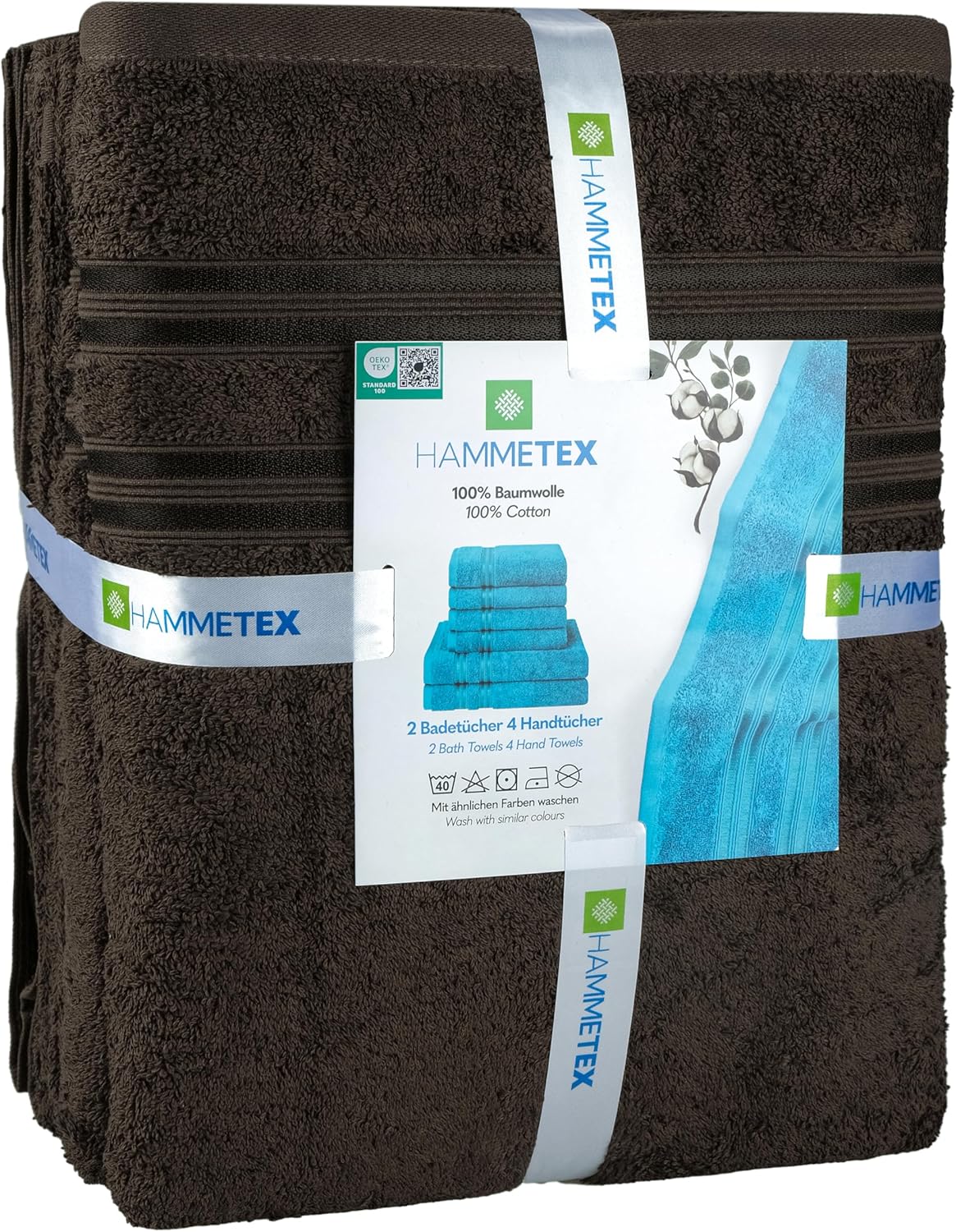 Комплект кърпи HAMMETEX от 6 части – Изработени от 100% първокласен турски памук (500 GSM) за несравнима мекота, абсорбция и издръжливост. Идеални за баня, спа център, сауна или за гости – съчетание от лукс и функционалност.