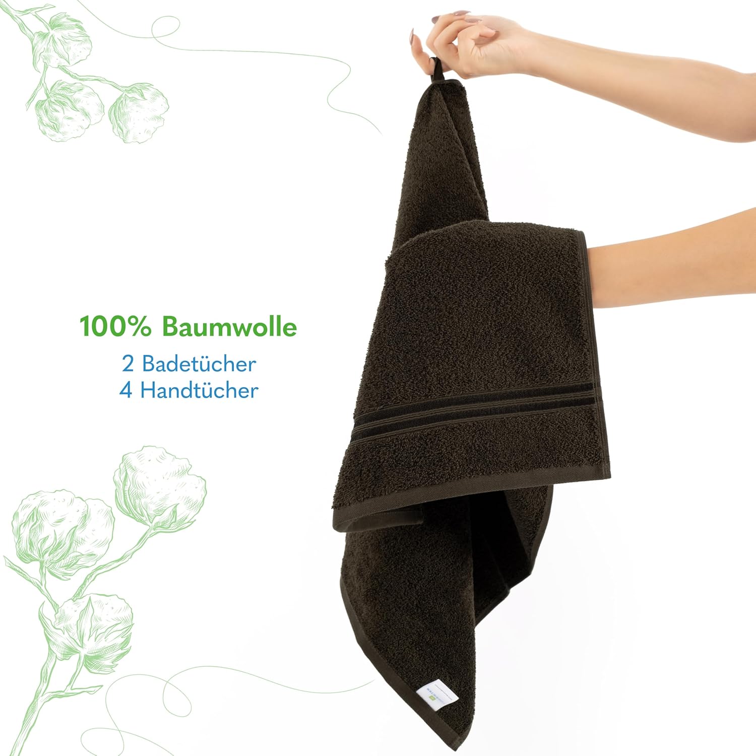 Открийте комплекта HAMMETEX: 2 големи кърпи за баня (70x140 см) и 4 кърпи за ръце (50x100 см). Изработени от фин турски памук за комфорт и функционалност – идеални за ежедневна употреба или специални поводи.