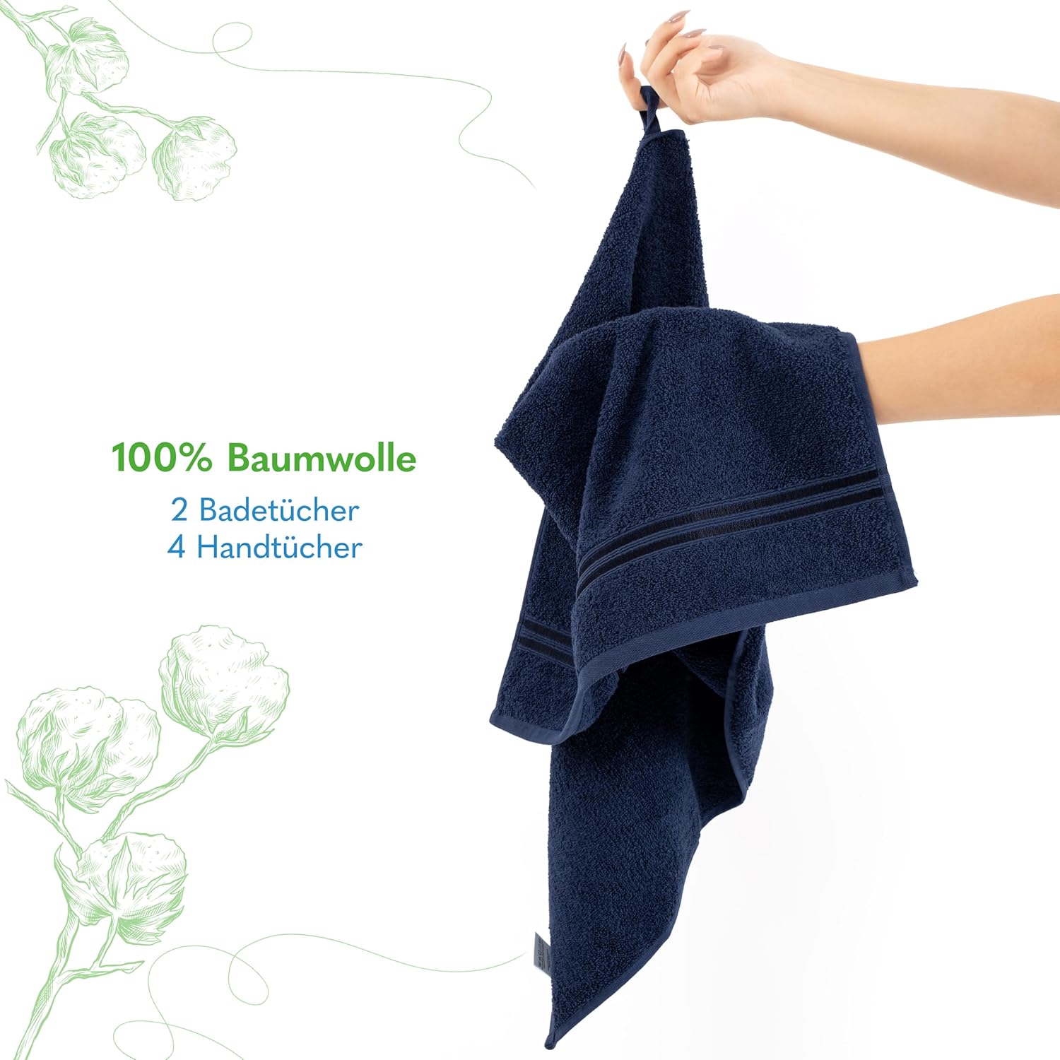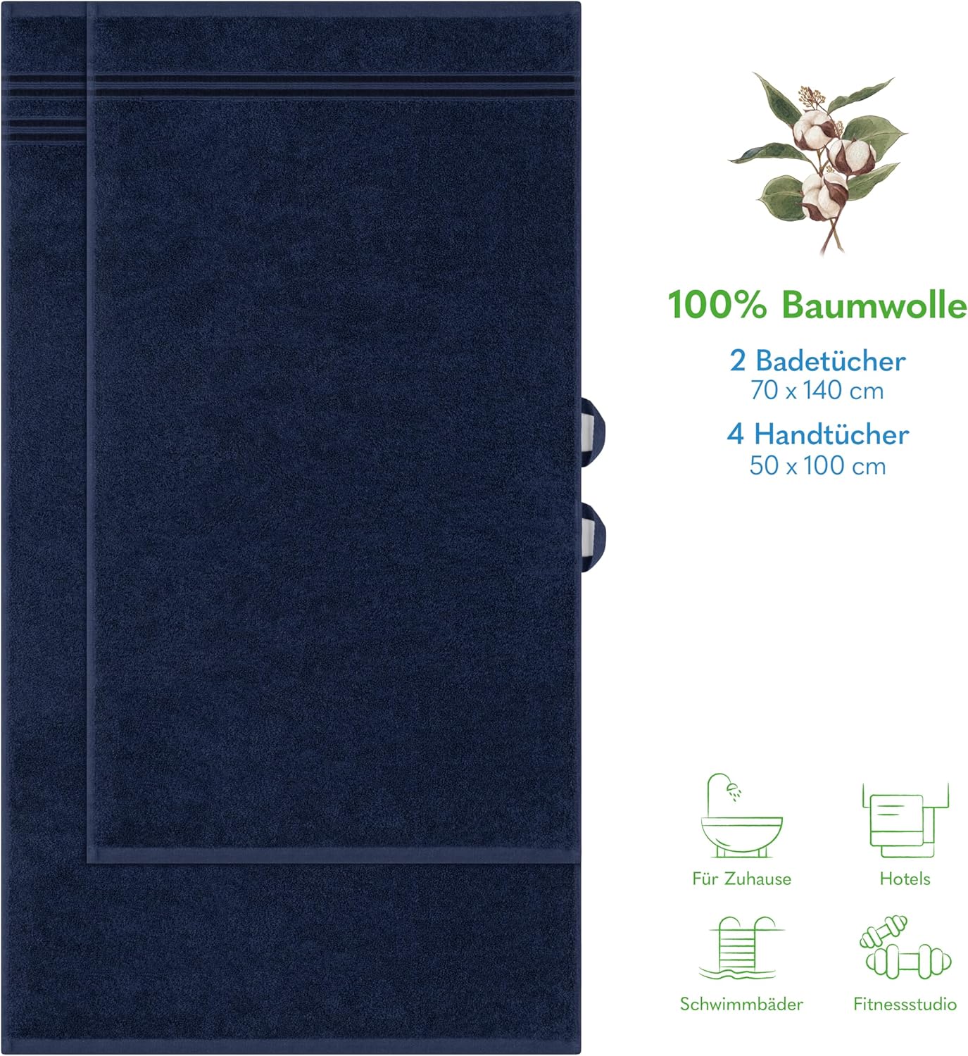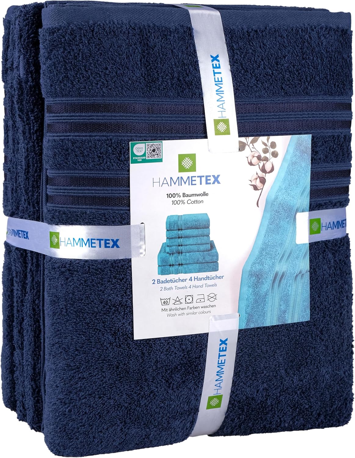 Открийте комплекта HAMMETEX: 2 големи кърпи за баня (70x140 см) и 4 кърпи за ръце (50x100 см). Изработени от фин турски памук за комфорт и функционалност – идеални за ежедневна употреба или специални поводи.
