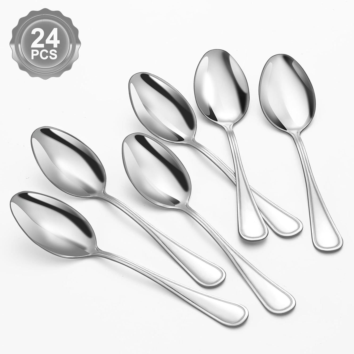 • 【Неръждаема стомана и издръжливост】 Тези 24-частични комплекти лъжици за супа са изработени от неръждаема стомана за хранителни цели, което ви осигурява издръжлив комплект лъжици, който ще издържи много години. Нещо повече, лъжиците са устойчиви на ръжда и корозия, което гарантира безопасността на храните.