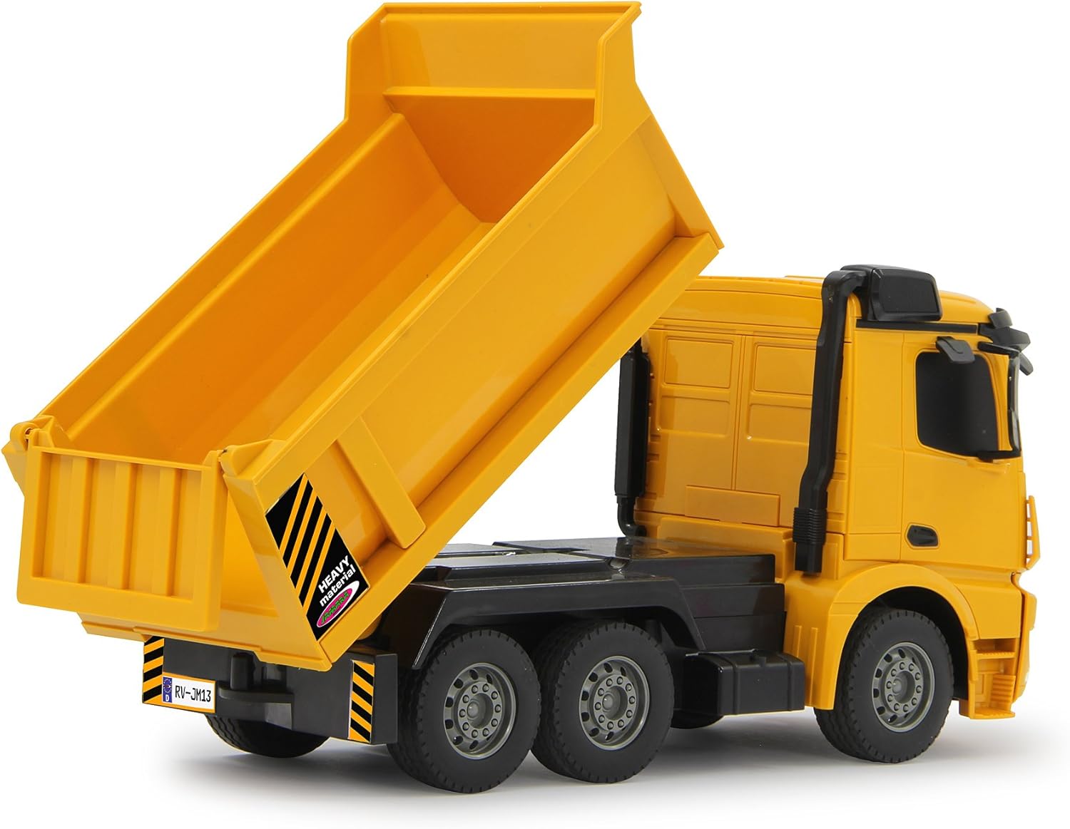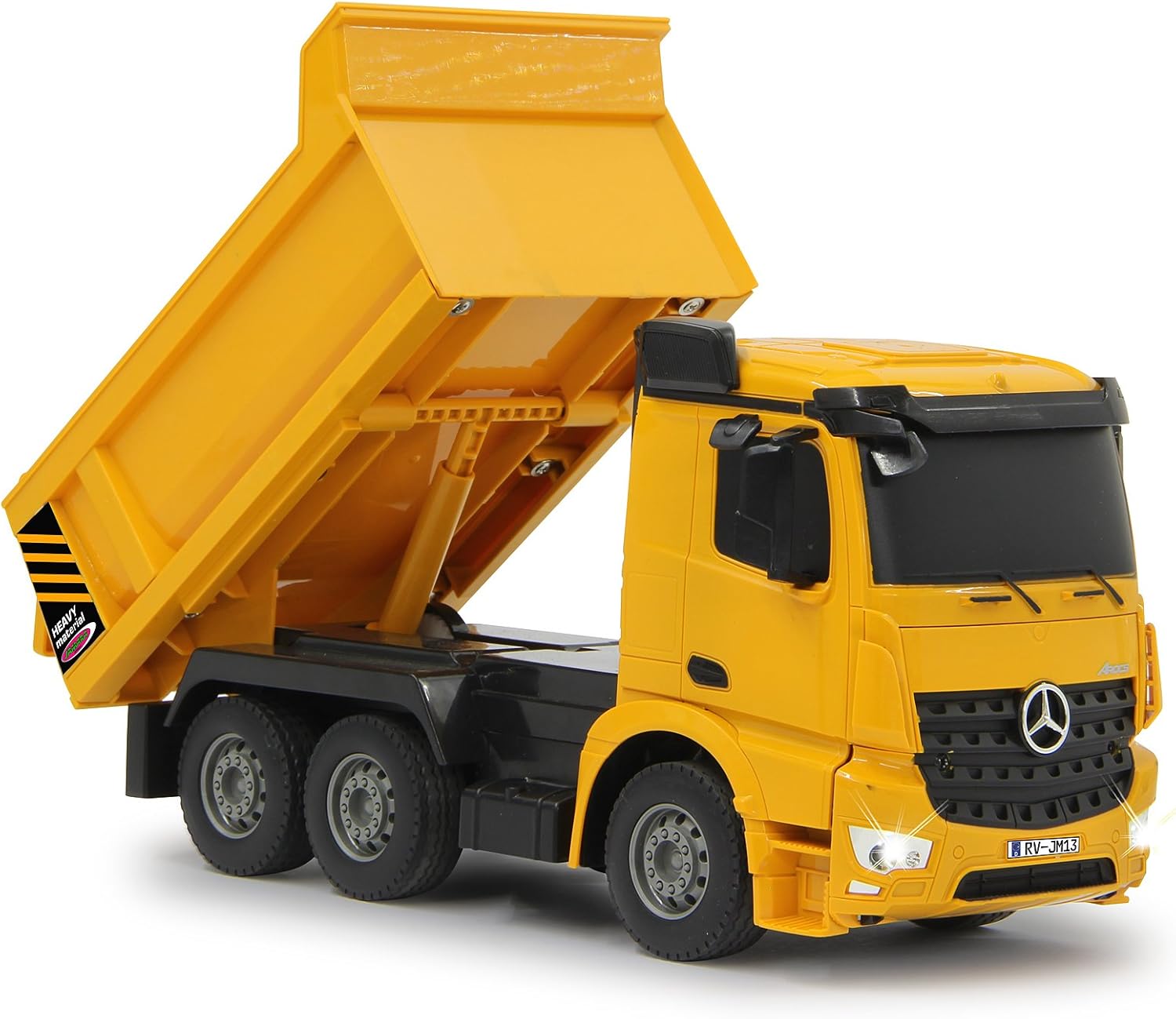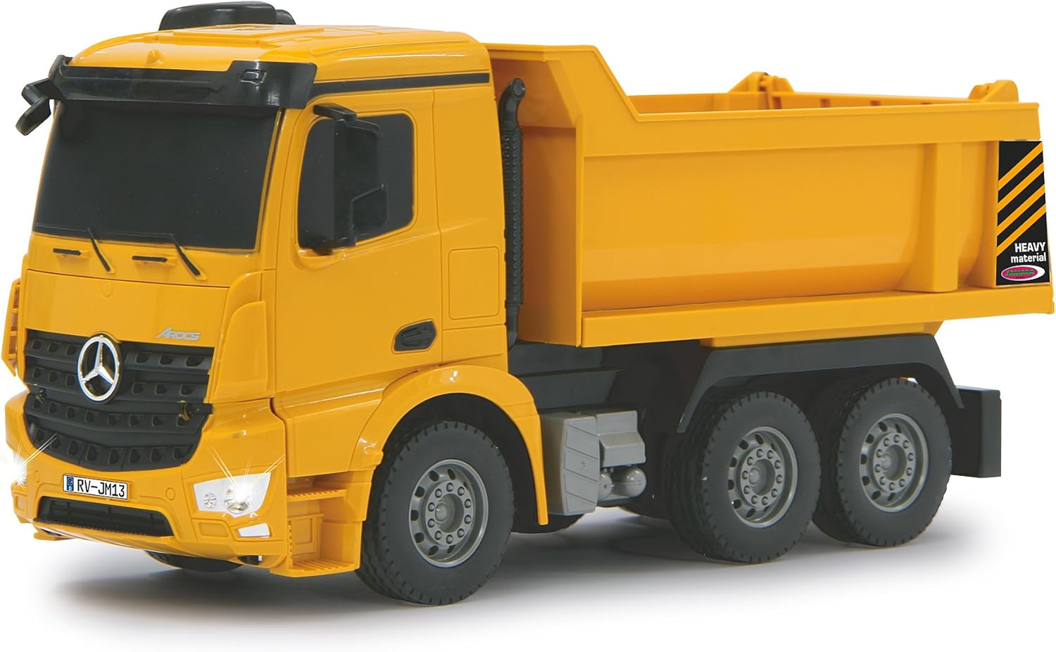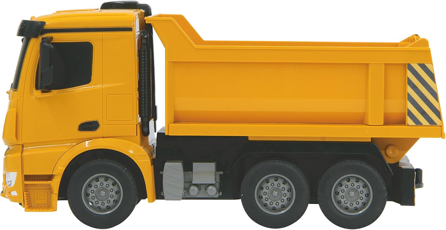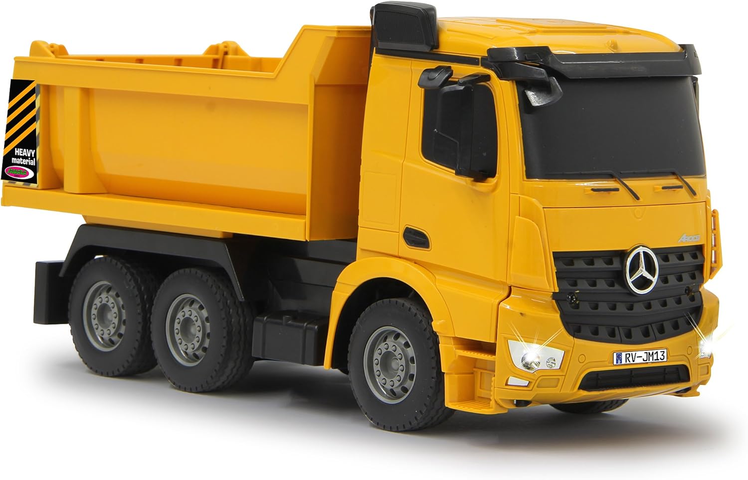 Самосвал Mercedes-Benz Arocs 2.4 GHz, артикул № 405108 Акценти: • Функции за повдигане/спускане на изсипващото корито: • Напред/назад • Ляво/дясно • Съдържание на стоп кутията: • Модел • Дистанционно управление 2.4 GHz • Инструкции Препоръчителни аксесоари: • Дистанционно управление: 2 x AA батерии 1.5 V, артикул № 14 0267. (Опаковка: 4) Модел: 3 x AA батерии 1.5 V, артикул № 14 0267 (опаковка от 4). Зарядно устройство "Charge Cell", включващо 6 x NiMh батерии 1.2 V 2700 mAh, артикул № 15 3085. Технически данни: дължина: ~ 280 мм, ширина: ~ 103 мм, височина: ~ 142 мм мм тегло: ~ 560 г