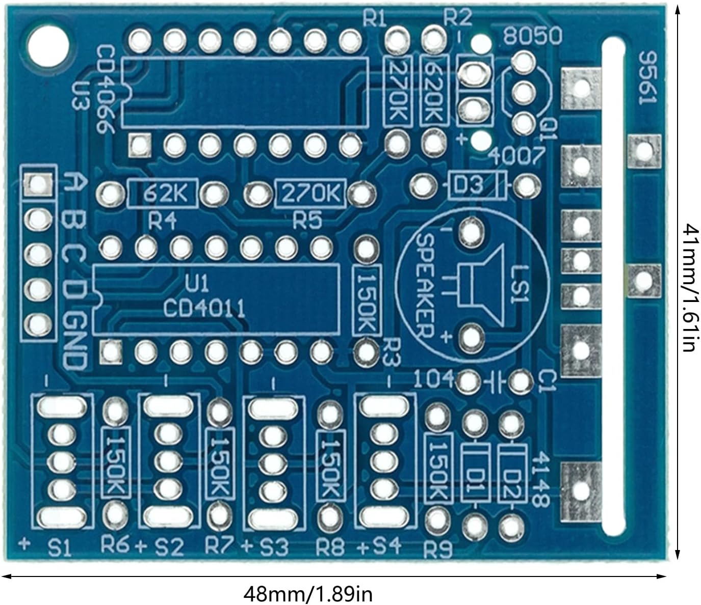 Размер на печатната платка: 48 мм (дължина) x 42 мм (ширина)