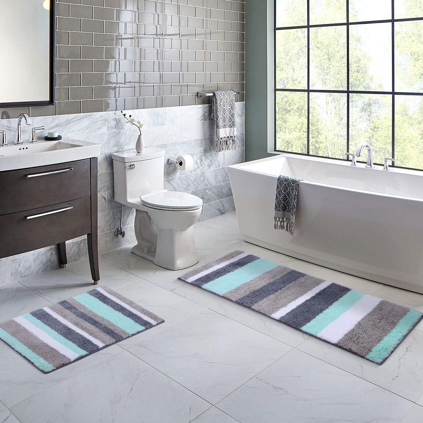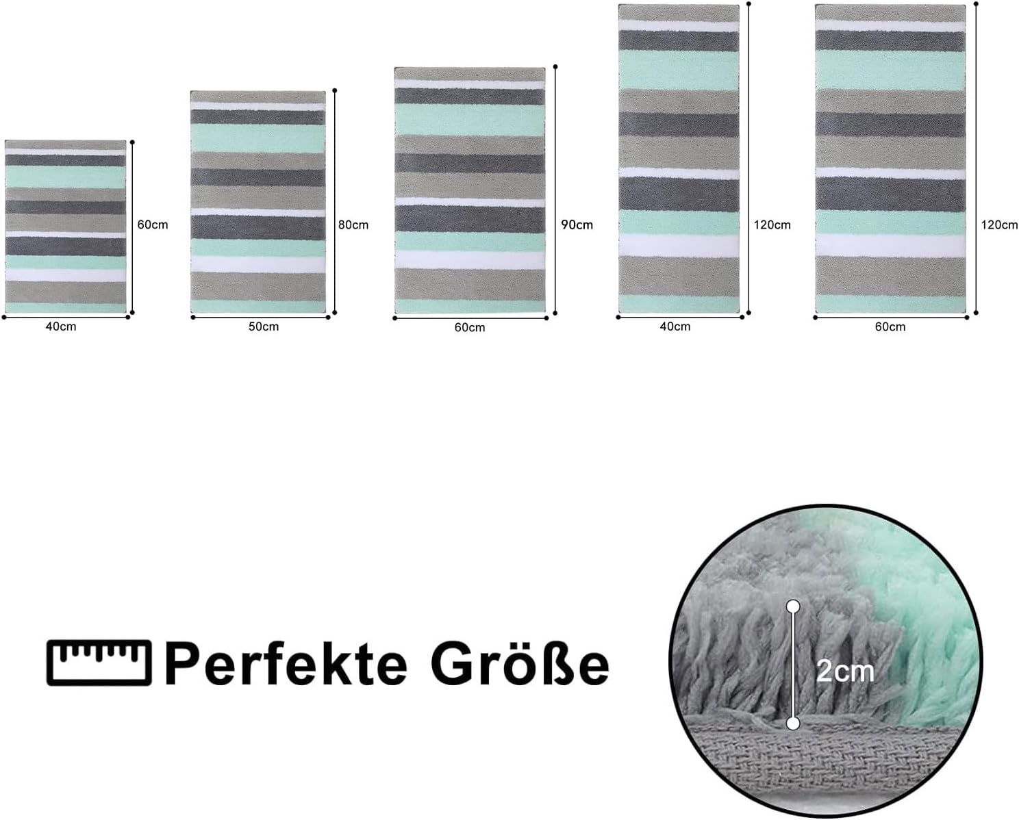 • Широко използвана: тази постелка за баня се предлага в 4 размера: 40 x 60 см, 50 x 80 см, 40 x 120 см и 60 x 120 см. Предлагаме и 2 комбинирани размера: 40 x 60 см + 50 x 80 см и 40 x 60 см + 40 x 120 см. Класическият раиран дизайн означава, че те лесно се вписват във всеки домашен декор и могат да се използват в бани, кухни, спални, дневни, входове и дори като килими за домашни любимци и др.