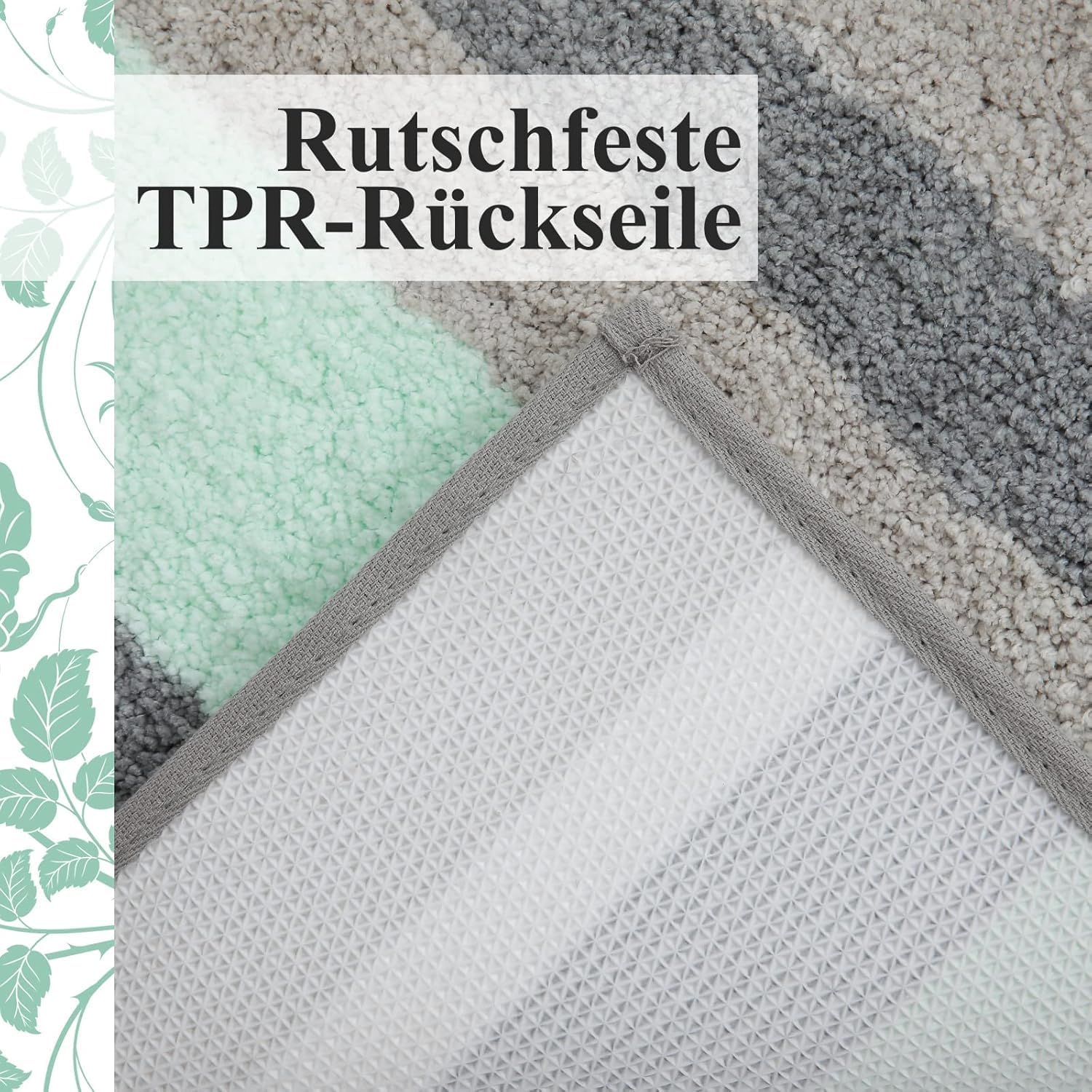Комплект неплъзгащи се постелки за баня Homaxy, 2 броя, абсорбиращи постелки за баня от микрофибър, меки постелки за баня с висок косъм - 40 x 60 см + 60 x 90 см, зелено/сиво