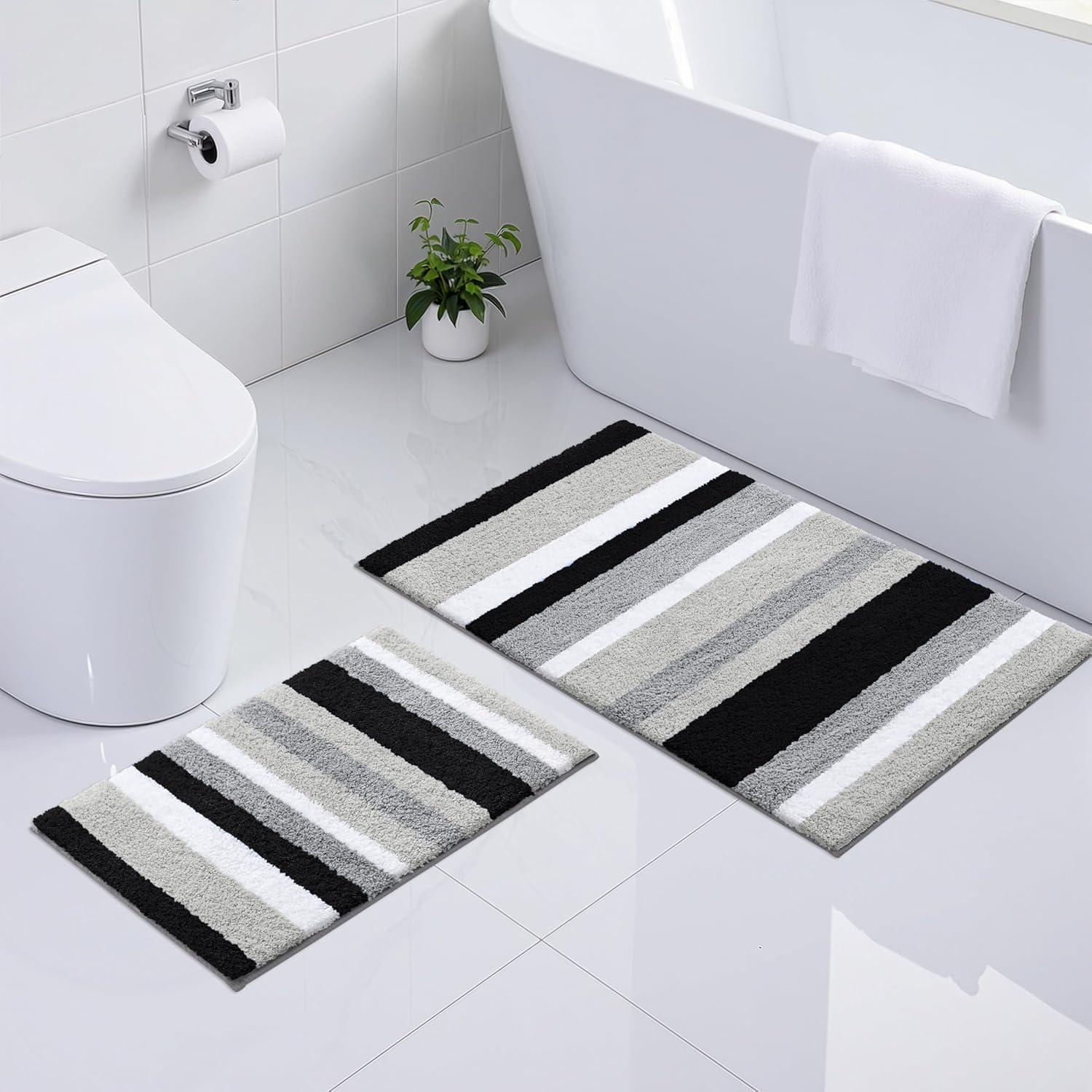 Комплект неплъзгащи се постелки за баня Homaxy, 2 броя, абсорбиращи постелки за баня от микрофибър, меки постелки за баня с висок косъм - 60 x 90 см, черно/сиво