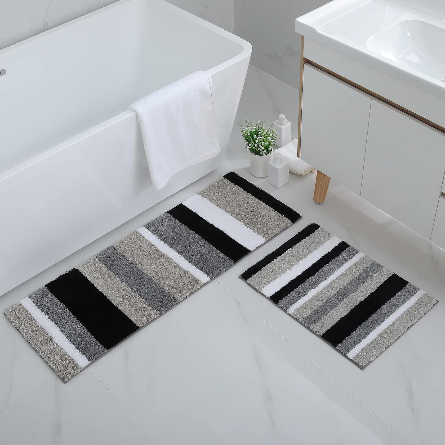 • Широко използвана: тази постелка за баня се предлага в 4 размера: 40 x 60 см, 50 x 80 см, 40 x 120 см и 60 x 120 см. Предлагаме и 2 комбинирани размера: 40 x 60 см + 50 x 80 см и 40 x 60 см + 40 x 120 см. Класическият раиран дизайн означава, че те лесно се вписват във всеки домашен декор и могат да се използват в бани, кухни, спални, дневни, входове и дори като килими за домашни любимци и др.