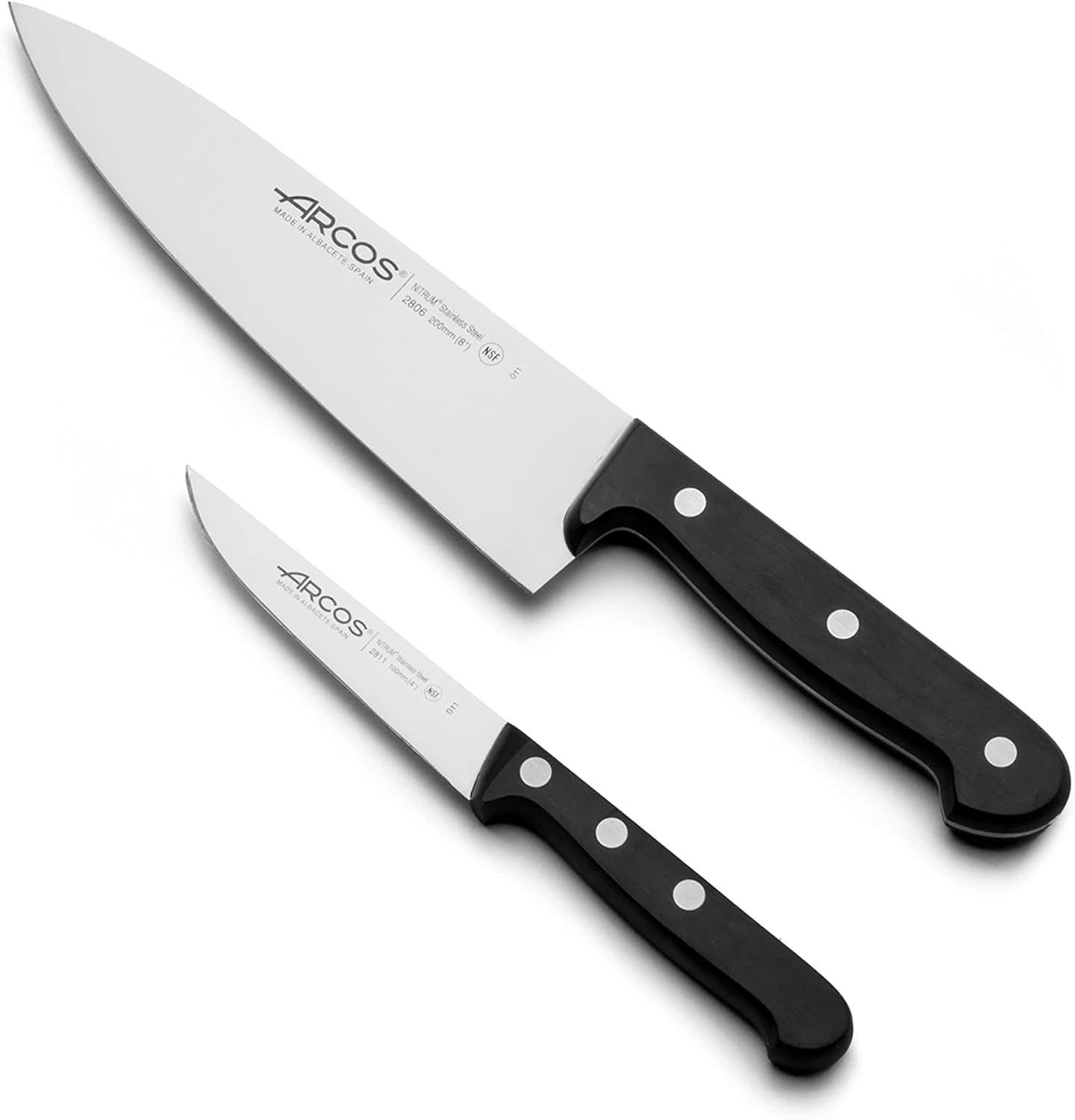 Комплект ножове Arcos от 2 части - Неръждаема стомана Nitrum, острие 360 мм, 363 г - Професионален кухненски нож за готвене - Ергономична дръжка от полиоксиметилен (POM) - Черен, Универсална серия