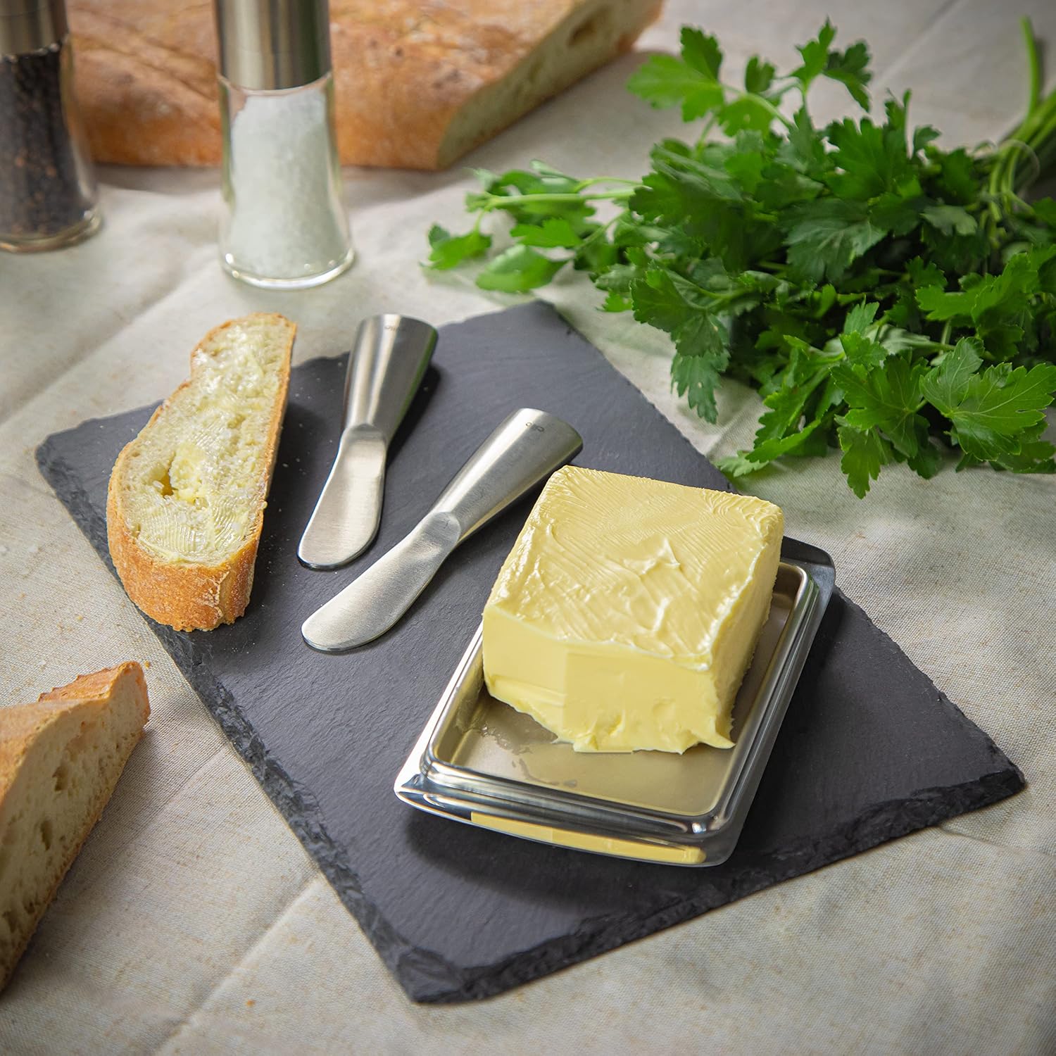 • Гладкото острие със заоблен връх е идеално за намазване на масло върху голяма площ върху мини хлебчета, филийки багета или обилен селски хляб.