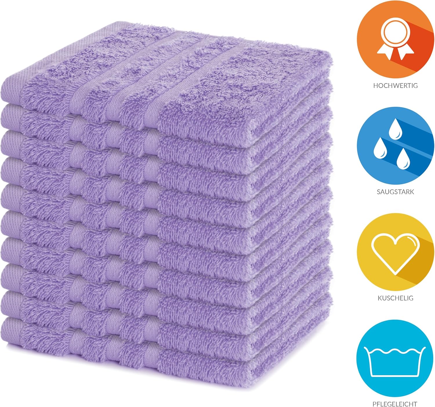 Комплект от 10 кърпи Elena Terry Series, цвят лавандула, 30 x 30 см