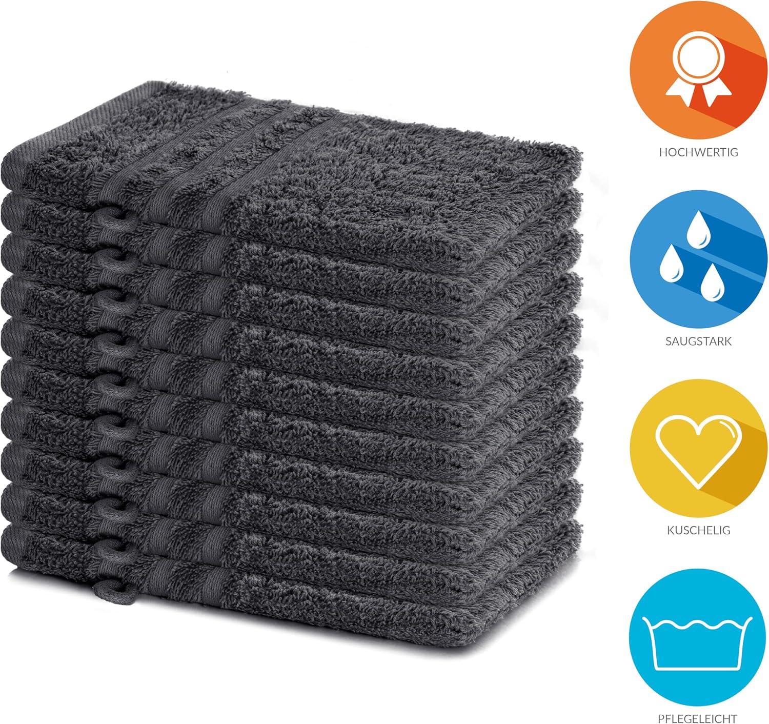 Комплект от 10 кърпи Lavea Elena Terry Series, 15 x 21 см, антрацит