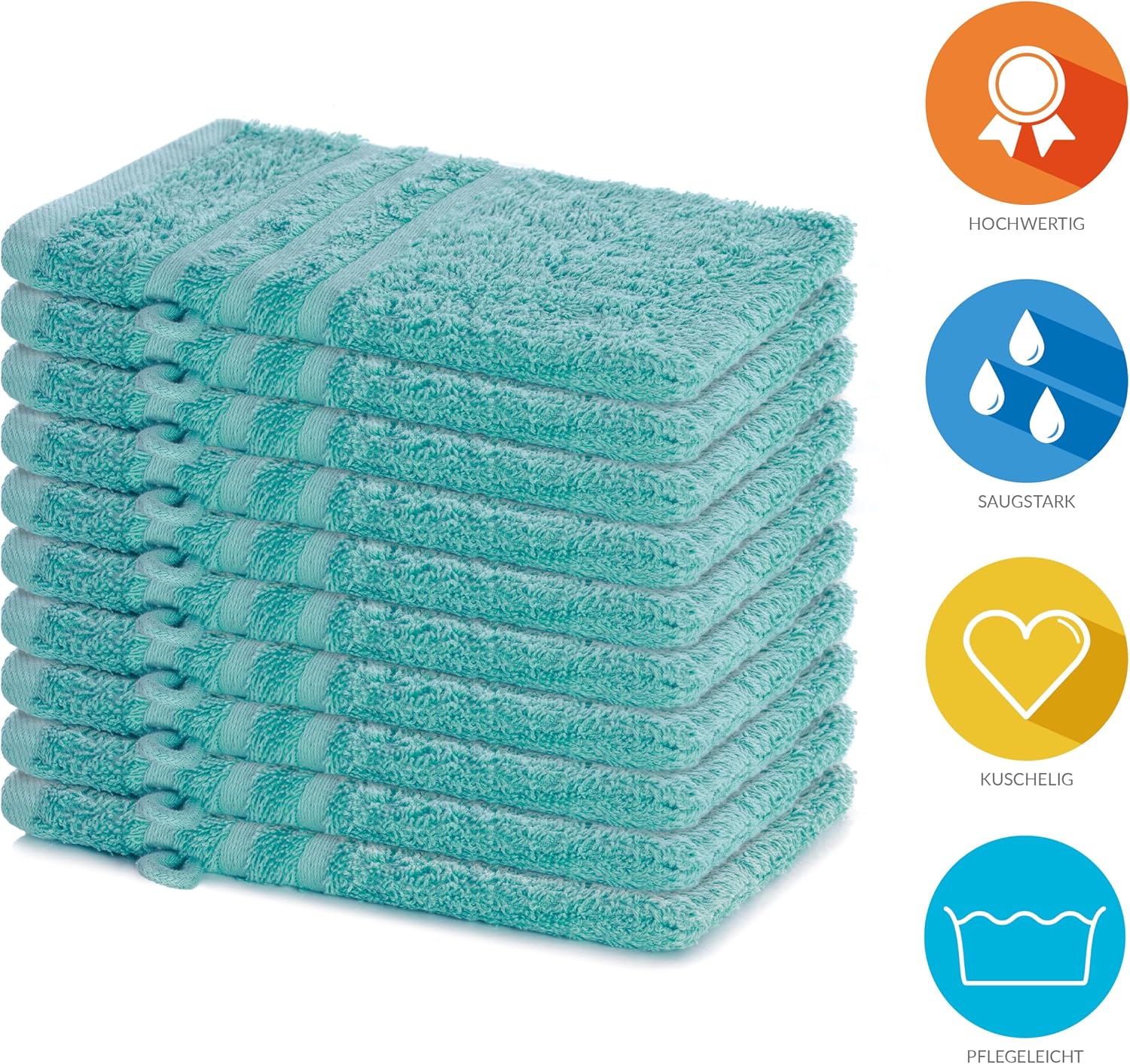 Комплект от 10 кърпи Lavea Elena Terry Series, 15 x 21 см, тюркоазени