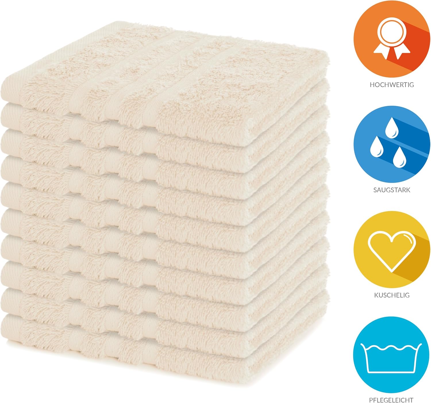 Комплект от 10 кърпи Lavea Elena Terry Series, кремави, 30 x 30 см