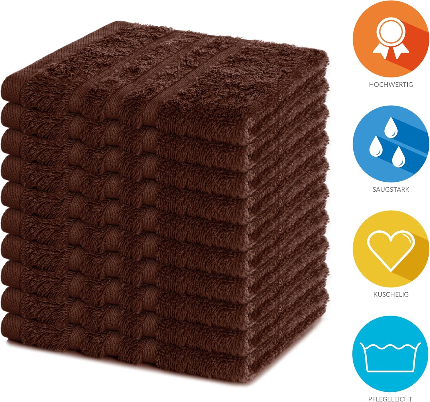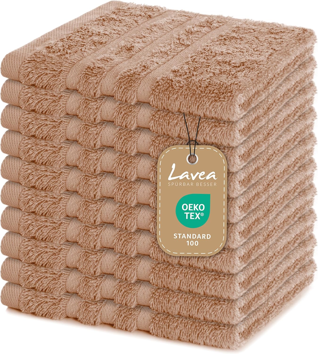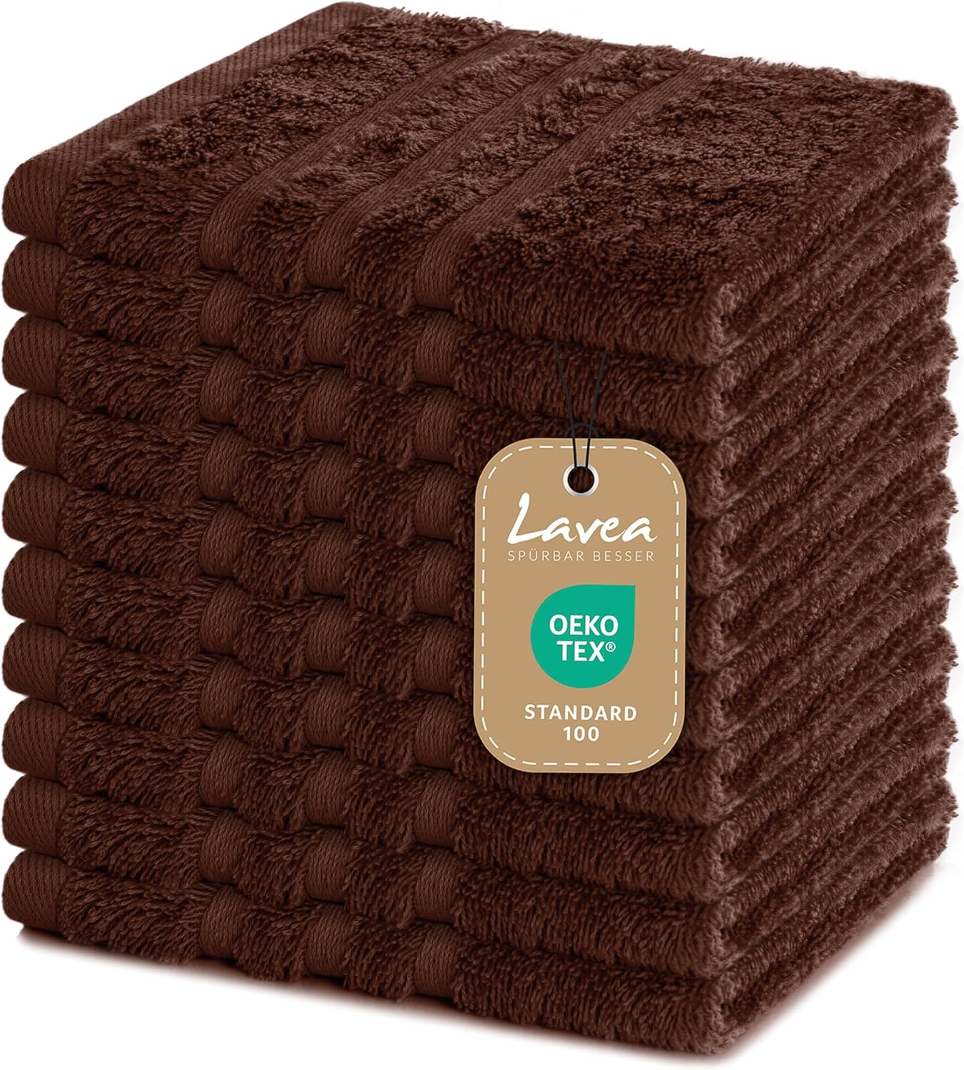 Комплект от 10 кърпи Lavea Elena Terry Series, цвят кафеено кафяво, 30 x 30 см