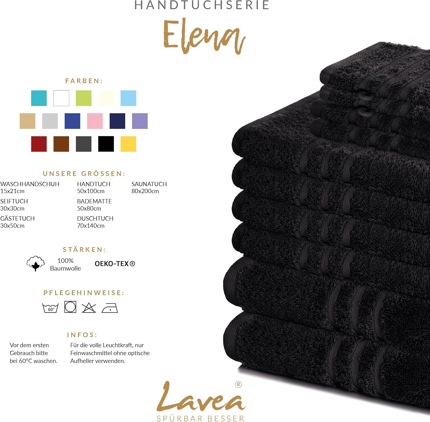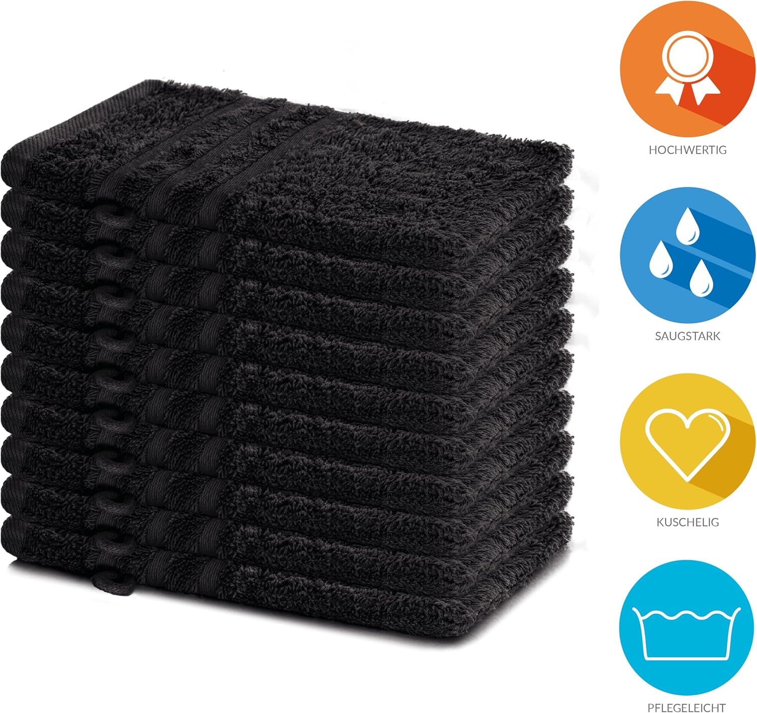 Комплект от 10 кърпи за баня Lavea Elena Terry Series, 15 x 21 см, черни