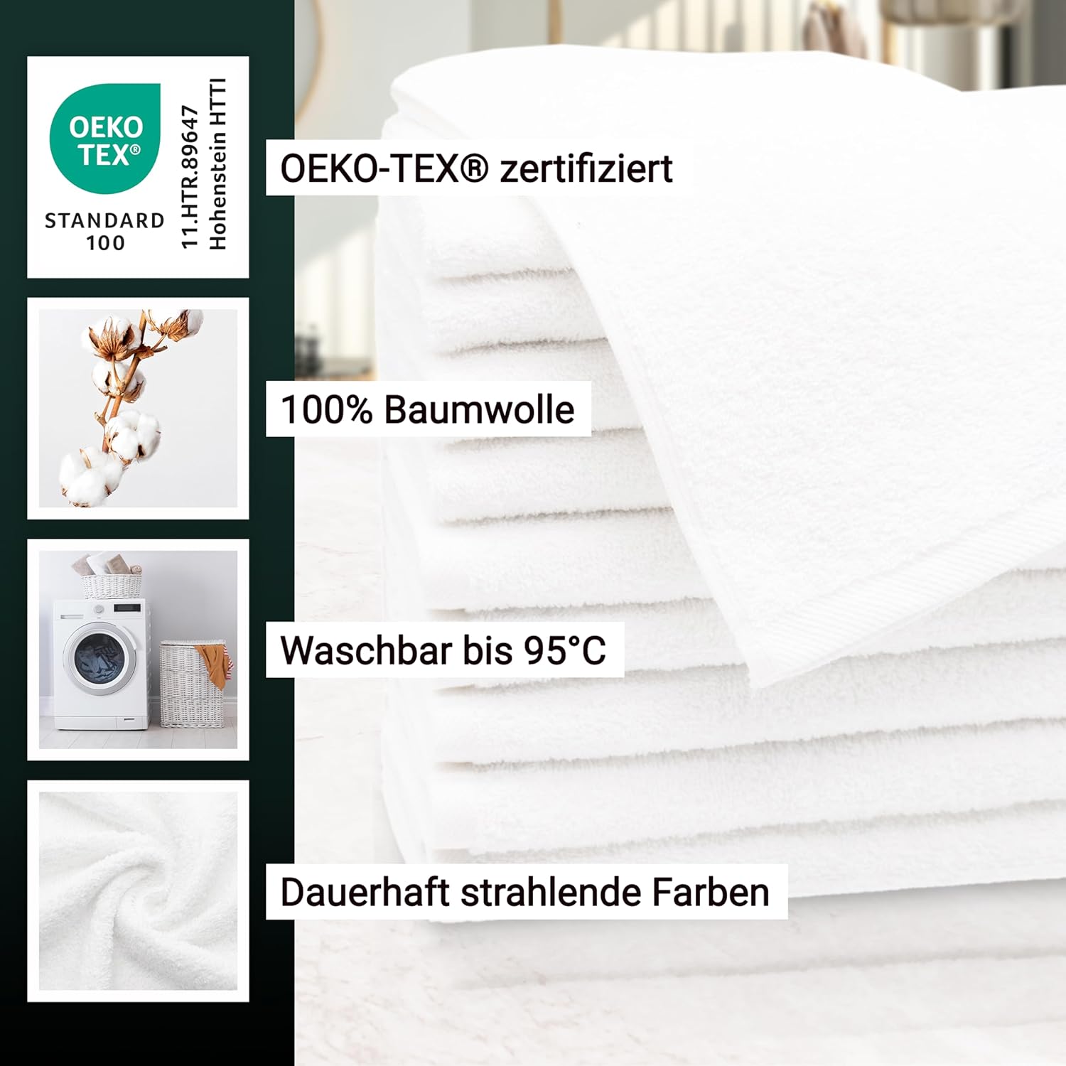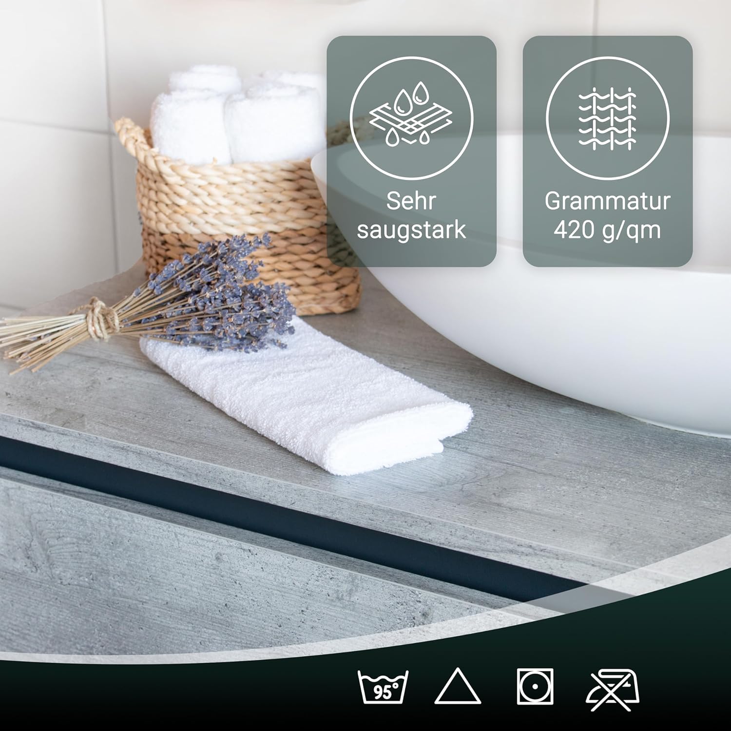 Благодарение на липсата на бордюр, се осигурява трайно стабилна форма на кърпите за гости.