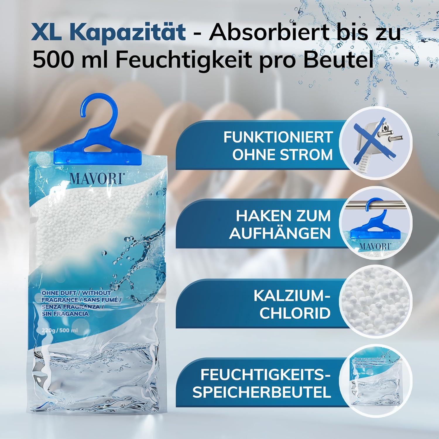 Комплект от 10 XL висящи влагоабсорбатора | Торбичка за влагоабсорбатор | Шкаф за влагоабсорбатор и абсорбатор на влага за помещения срещу влага, мухъл и миризми | До 500 мл на торбичка