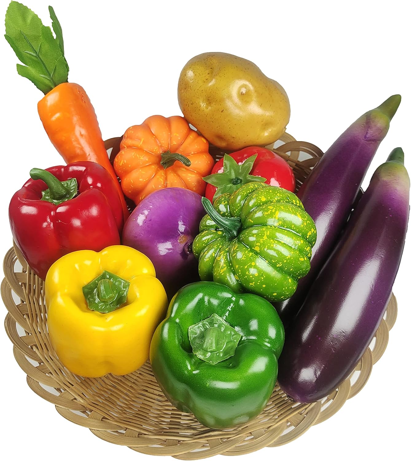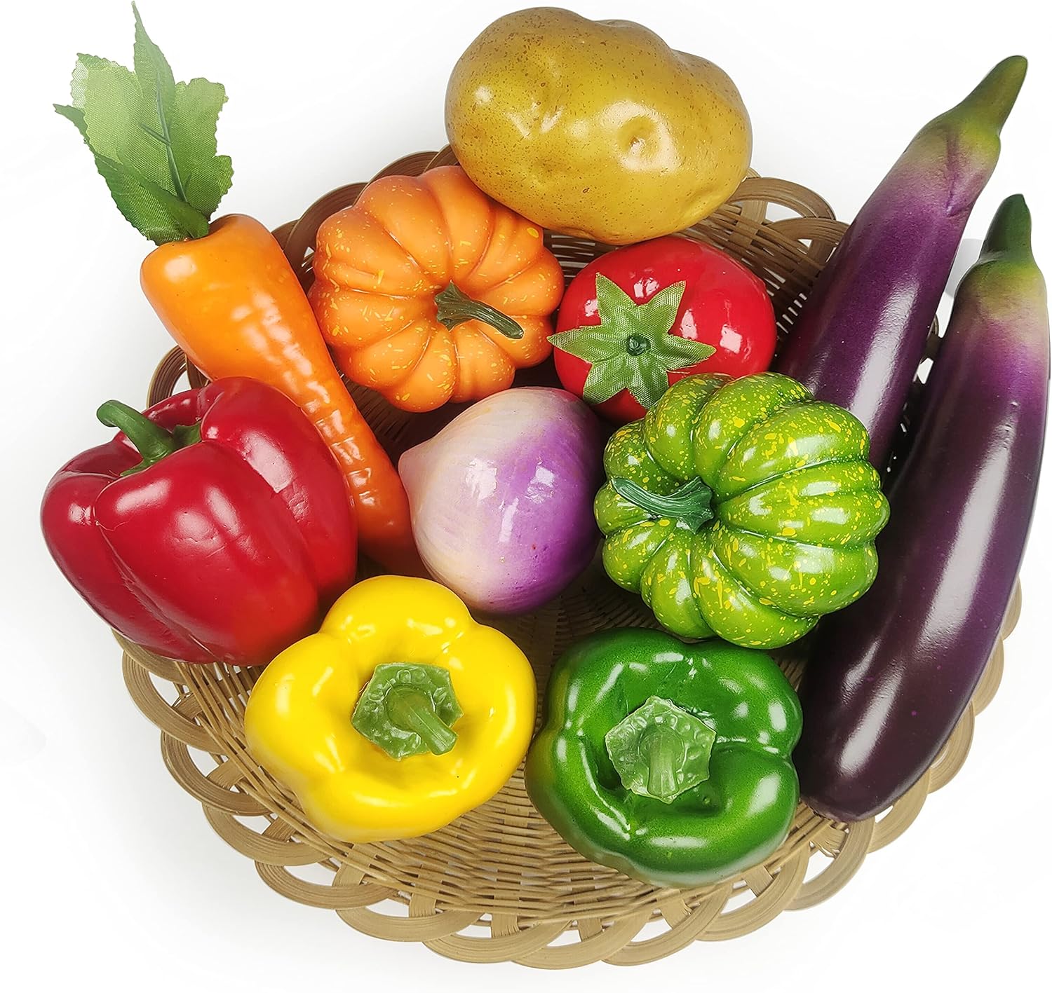 Комплект от 11 изкуствени зеленчуци, симулация на зеленчуци за декорация, комплект фалшиви зеленчуци за кухненски декор, декоративни зеленчуци, изкуствен лук, моркови, картофи, изкуствени домати