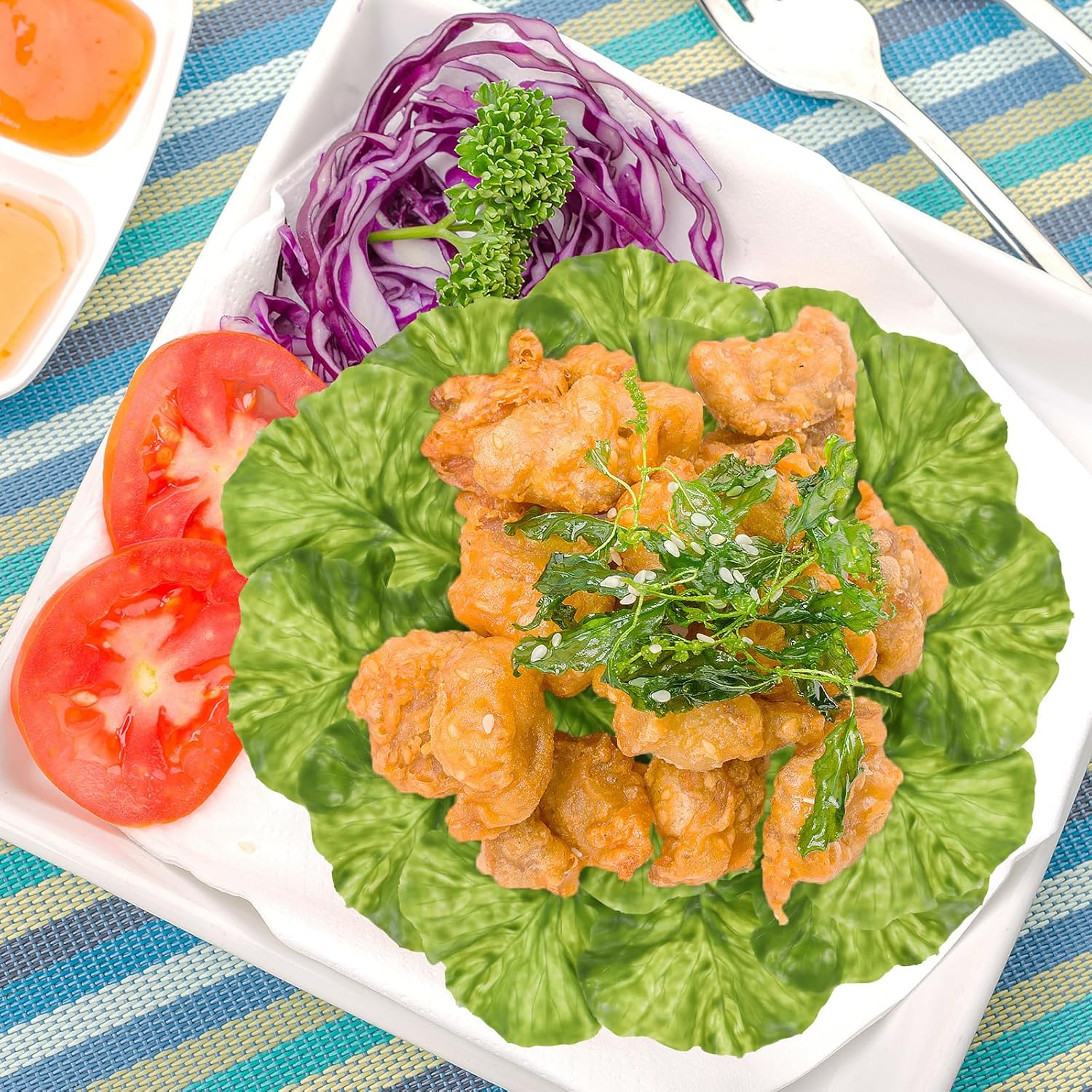 Цвят: Зелен, декорация, имитираща листа от салата.