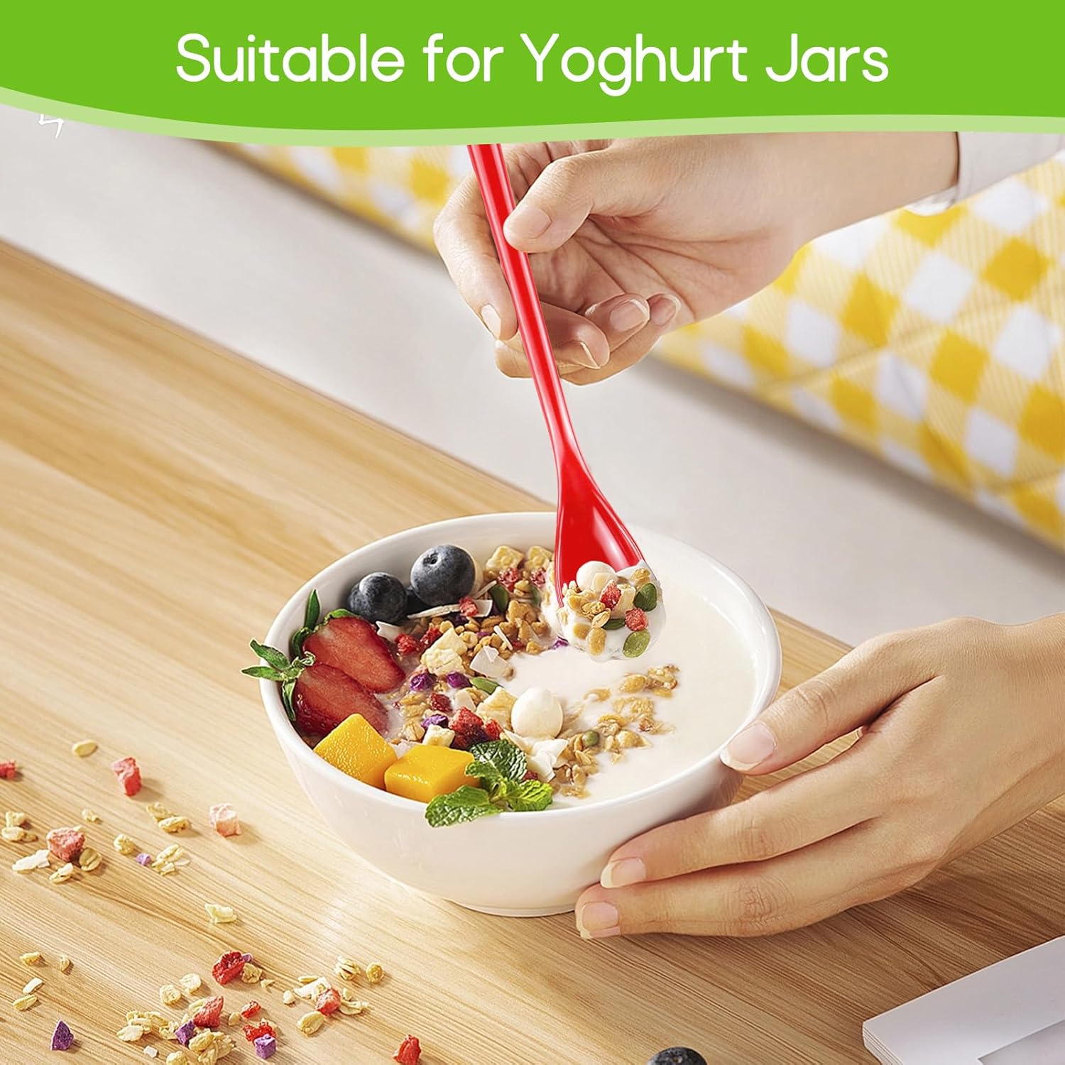 • 【Комплект от 12 дълги пластмасови лъжици, различни цветове】: Нашият комплект включва 12 дълги пластмасови лъжици с дръжки в 4 класически цвята, по 3 от всеки. Всяка лъжица е с дължина 18,5 см / 7,3 инча. Тези дълги лъжици са изработени от висококачествена пластмаса с гладка повърхност, ярки цветове, издръжливи са и устойчиви на избледняване. Те са нечупливи, здрави и ще отговорят на всички ваши хранителни нужди.