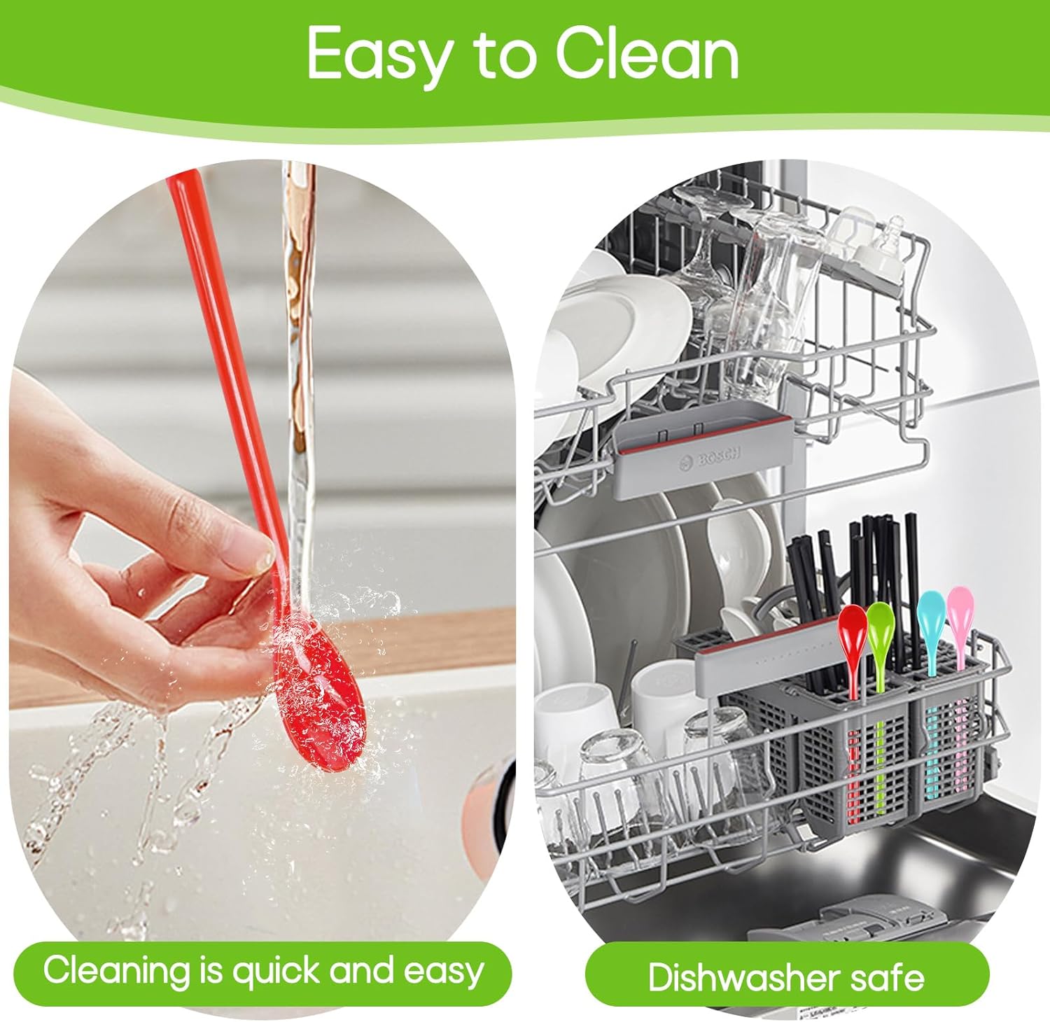 • 【Лесно почистване】: Дългата пластмасова лъжичка за яйца може да се почиства не само на ръка, но и директно в съдомиялна машина. Материалът и гладката повърхност на дългата десертна лъжичка гарантират, че не остават петна, което прави почистването по-ефективно и подходящо за честа употреба.