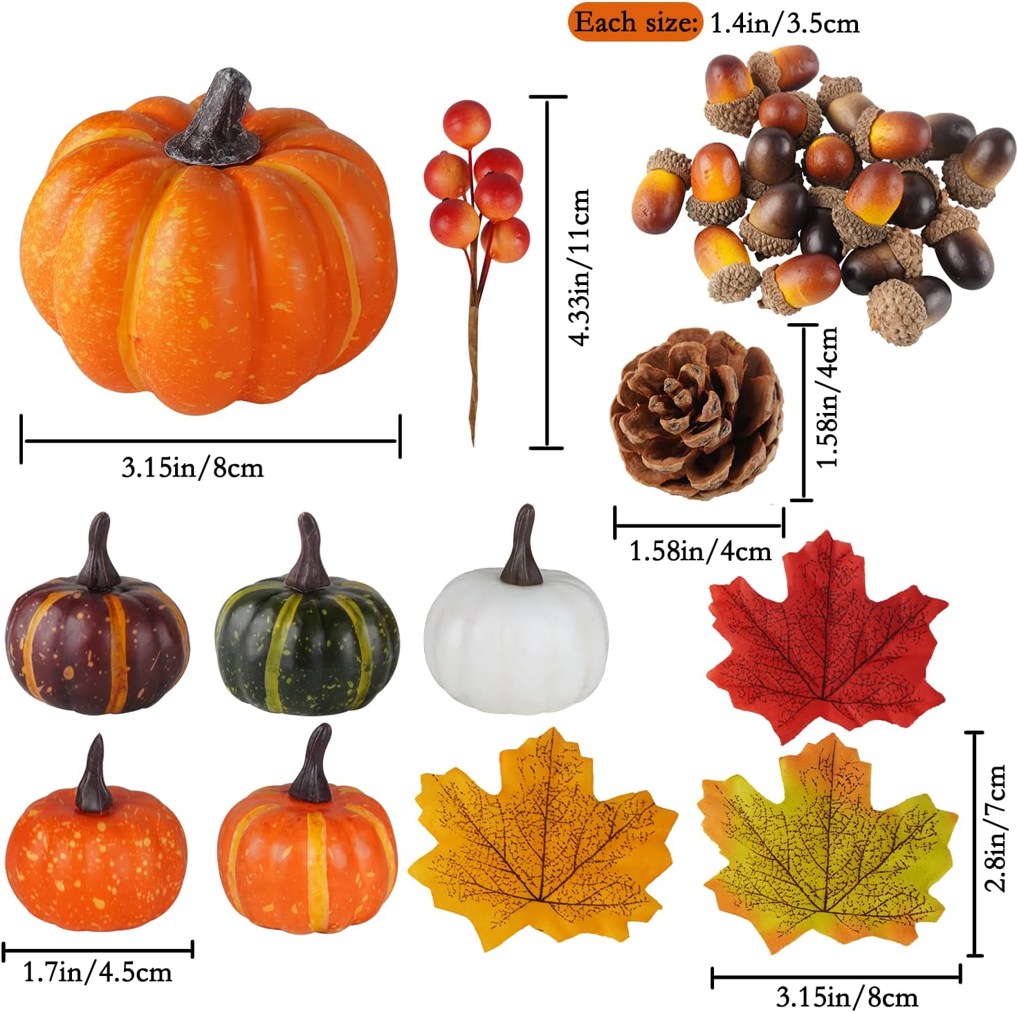 Miaikoe 16 броя различни изкуствени есенни тикви, бели, изкуствени и позлатени за декорации и цветове за Хелоуин за Деня на благодарността. Размер: Големите тикви са около 4,3 инча високи и 4,2 инча широки. Малките тикви се предлагат в различни размери от 2,4 до 3,6 инча високи и от 2,2 до 3,5 инча широки. Тази група тикви за реколта е идеална за вашите разнообразни нужди от декорация. Цвят: Изкуствените тикви са боядисани в наситено бяло и златно и са идеални за декориране според вашия вкус и съчетаване с други красиви сезонни декорации като различни елементи. Материал: тези изкуствени тикви са изработени от плътна пяна с нежно усещане при допир. Тиквите имат различни характерни форми с пластмасови стъбла, които стърчат от върховете им и изглеждат сякаш наскоро са били откъснати от лозата. Различни бели тикви за реколта са идеални за есенни декорации на маси, сезонни презентации за купи, есенни венци за врати, централни декорации за вечеря за Деня на благодарността, есенни сватбени декорации, картички за банкети, сезонни подаръци, цветни аранжировки, саксии за сочни тикви, реквизит за есенни арт проекти и учебни помагала за детска градина, реквизит за фотография и други.