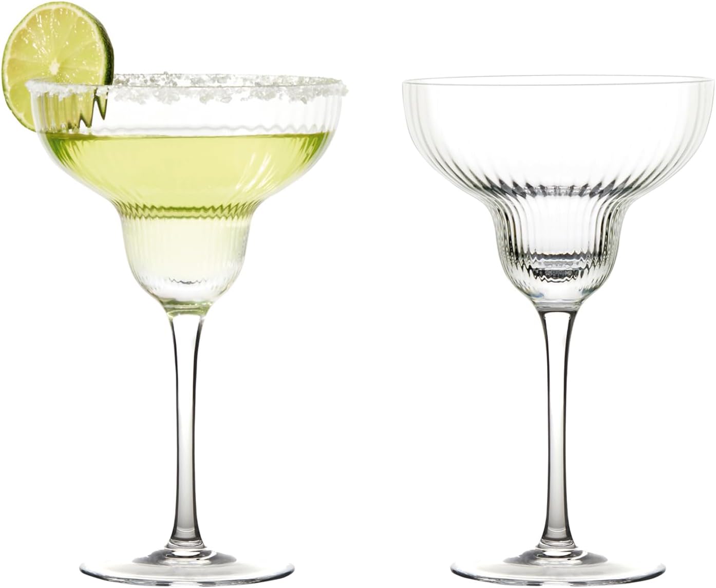 • КОМПЛЕКТ ЛУКСОЗНИ СТЪКЛЕНИ СЪДОВЕ: Този красив и универсален комплект е изработен на ръка, за да се гарантира най-високо качество, и включва две елегантни чаши за маргарита с модерна форма: плоска основа, заоблени ъгли и ъглови страни, които се стесняват навътре. Този разкошен комплект от две чаши за маргарита е желано допълнение към колекцията от стъклени съдове на всяко модерно домакинство, позволявайки ви да сервирате и да се насладите на маргарита, пиня колада, еспресо мартини или дори десерт с добавен щрих цвят и изтънченост.