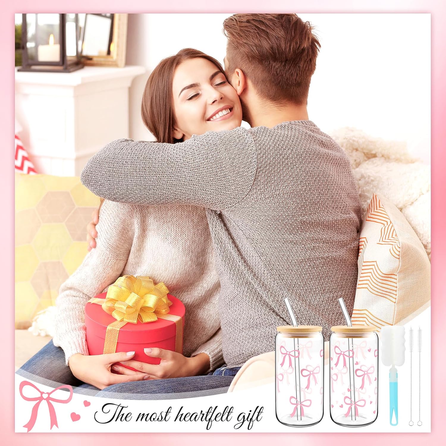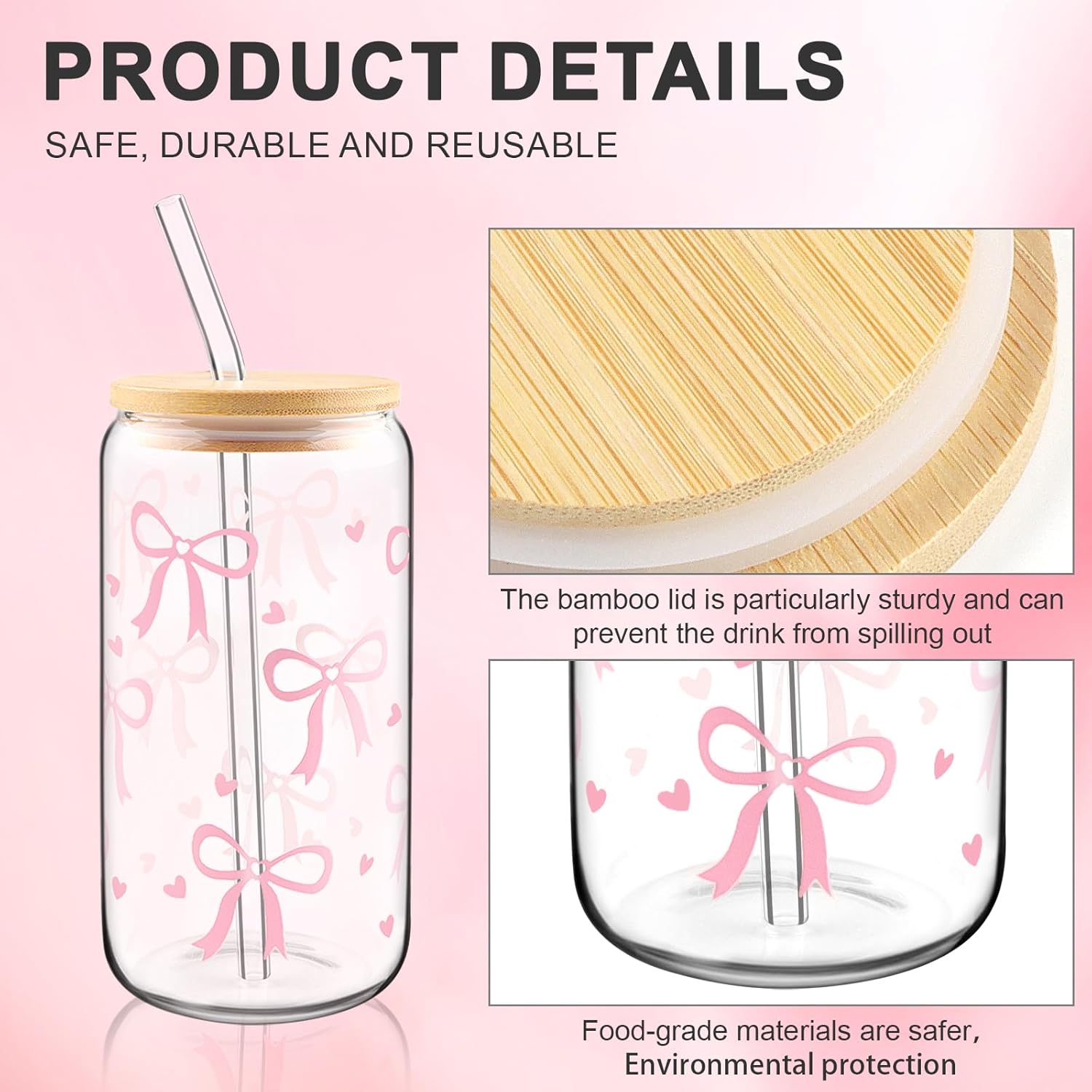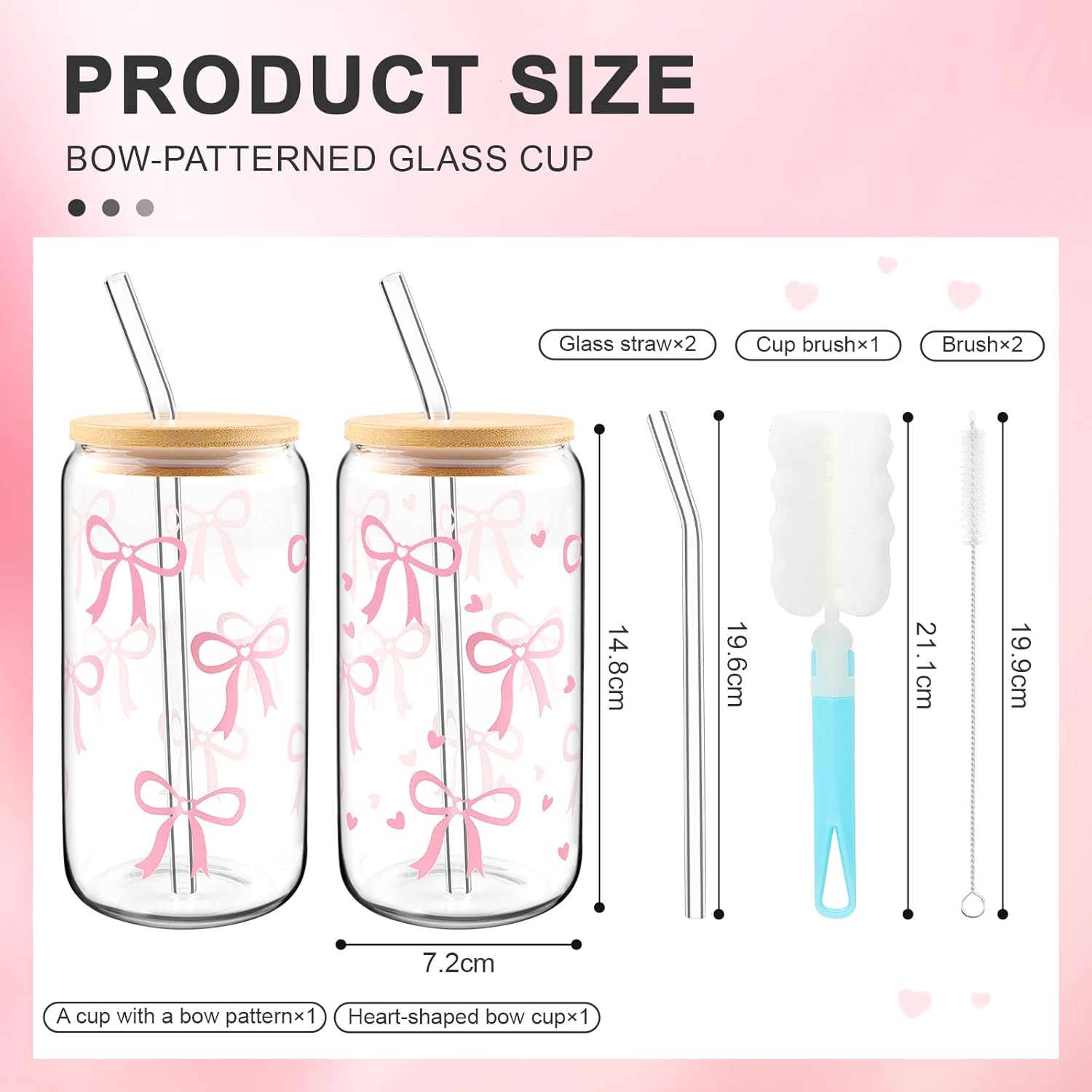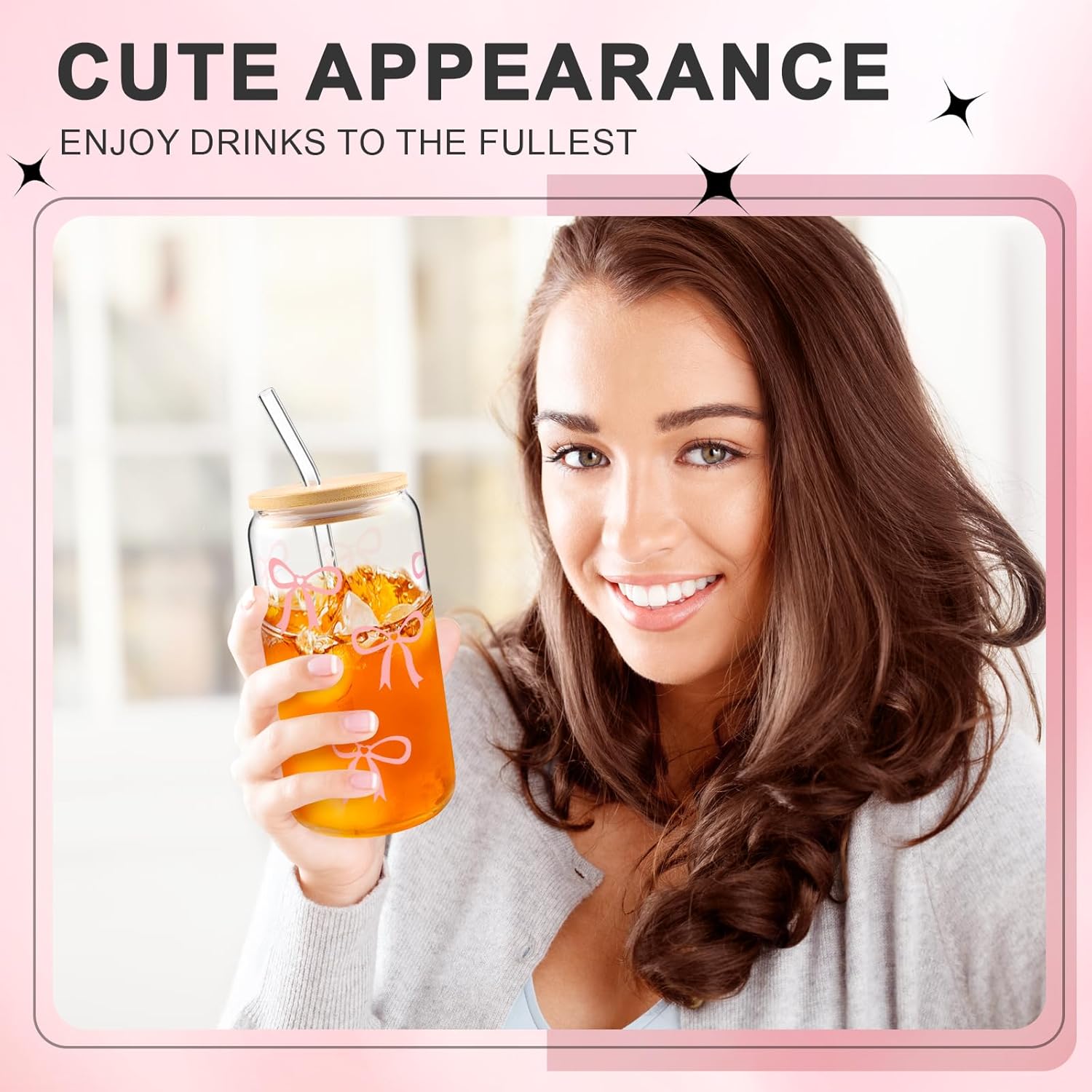 3.Praktisch Und Schön: Modische schleife und herzmuster machen diese trinkbecher mit deckel und strohhalm sowohl praktisch als auch schön, fügen sie einen stil, um ihre täglichen getränke, ein must have für haus und partei.