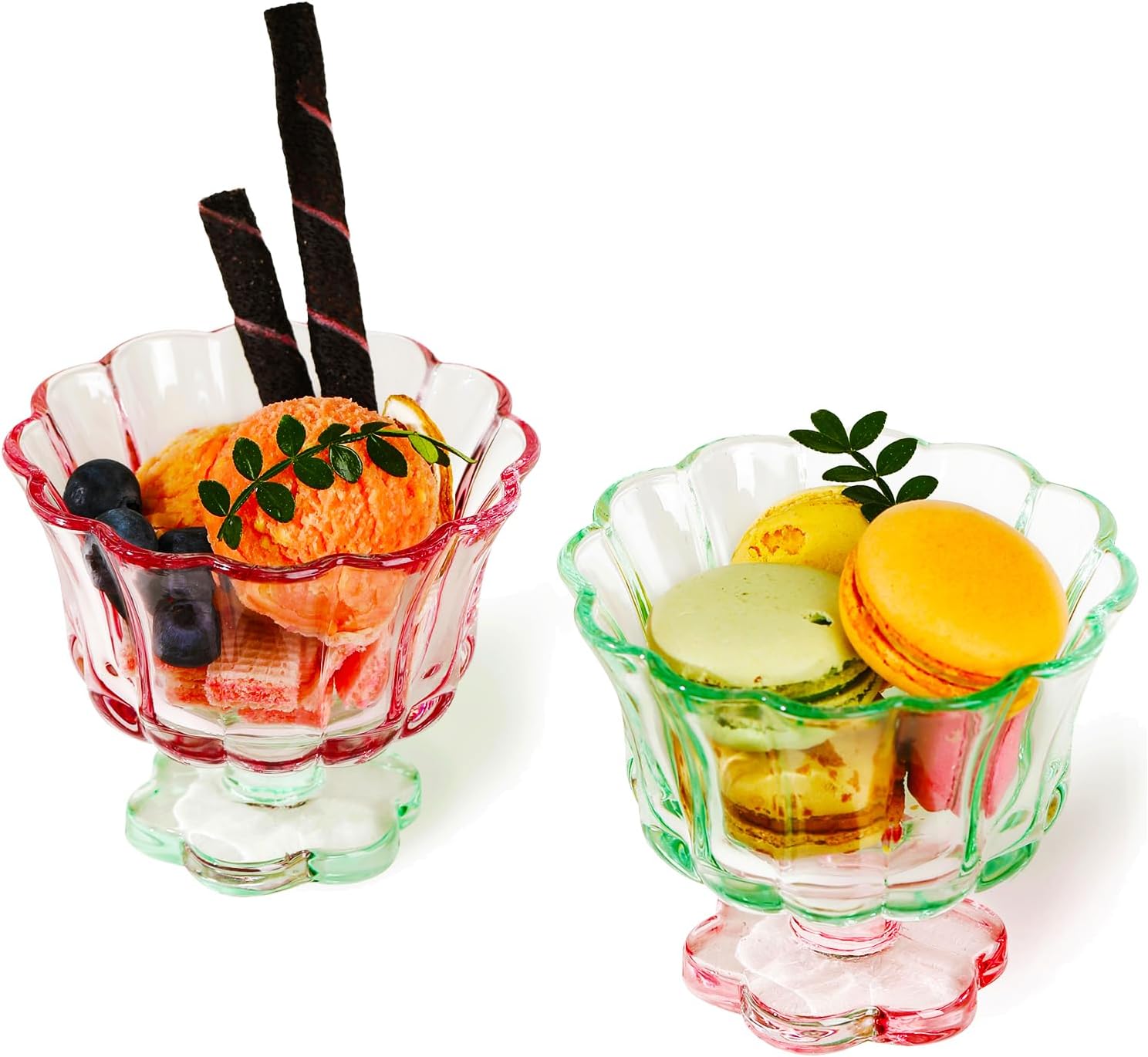 Комплект от 2 чаши за сладолед на крачета (прозрачни), стъклени чаши с форма на венчелистче, подходящи за сок, сладолед, коктейли, десерти и други.