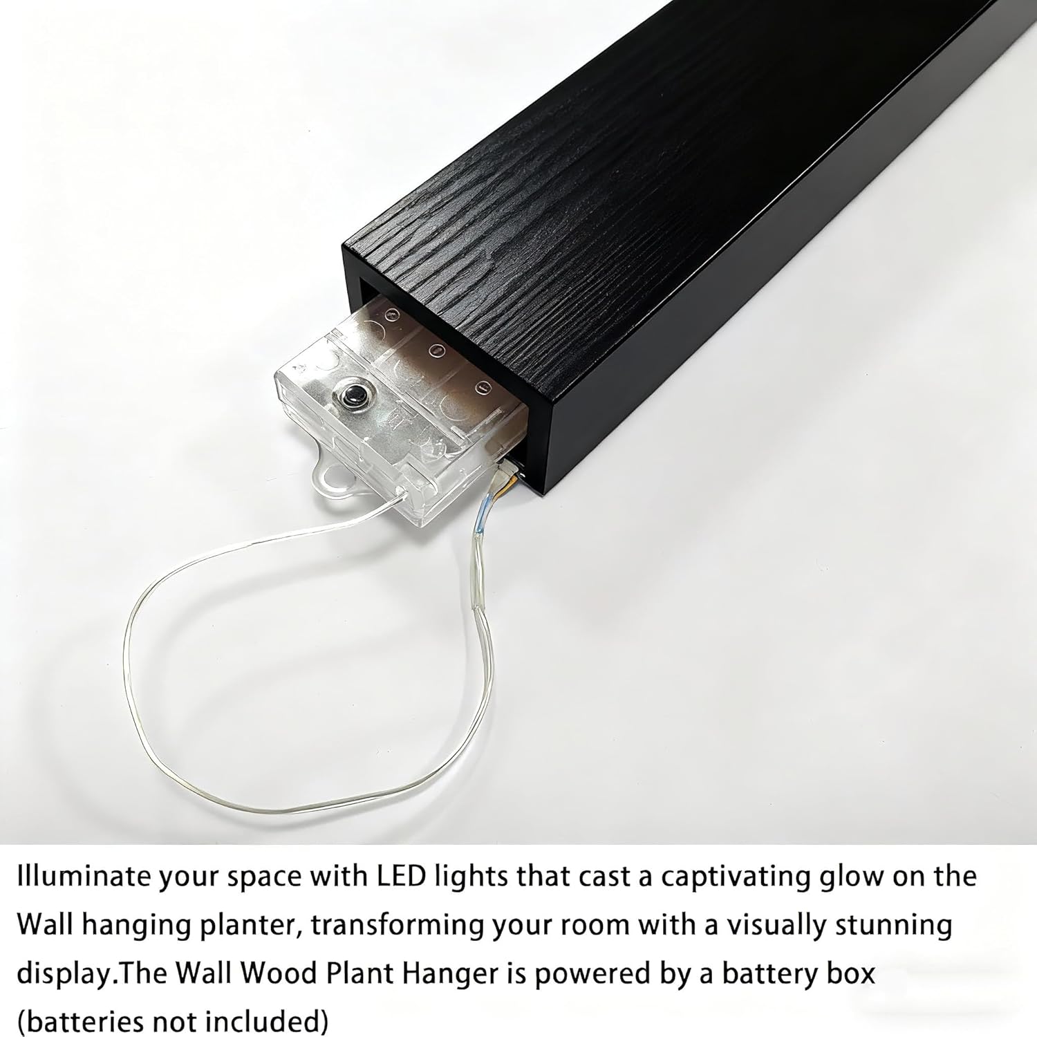 Комплект от 2 дървени стенни вази с LED светлини за стайни растения, изкуствени евкалиптови стенни саксии, изкуствени лози за хол, баня, декорации, стенна декорация, зелени растения (черни)