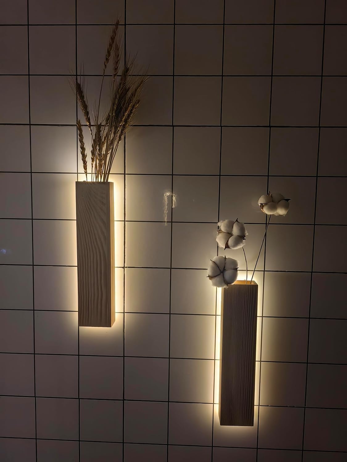 • LED дървена стенна ваза за декорация - Тези тънки дървени стенни вази с LED светлини и 4 парчета изкуствен евкалипт са перфектната декорация за всяка стена във вашия дом или офис. Те добавят характер към вашата галерия, спалня, нощно шкафче, хол, трапезария, кухня, баня, двор, спалня, входно пространство, общежитие или офис.