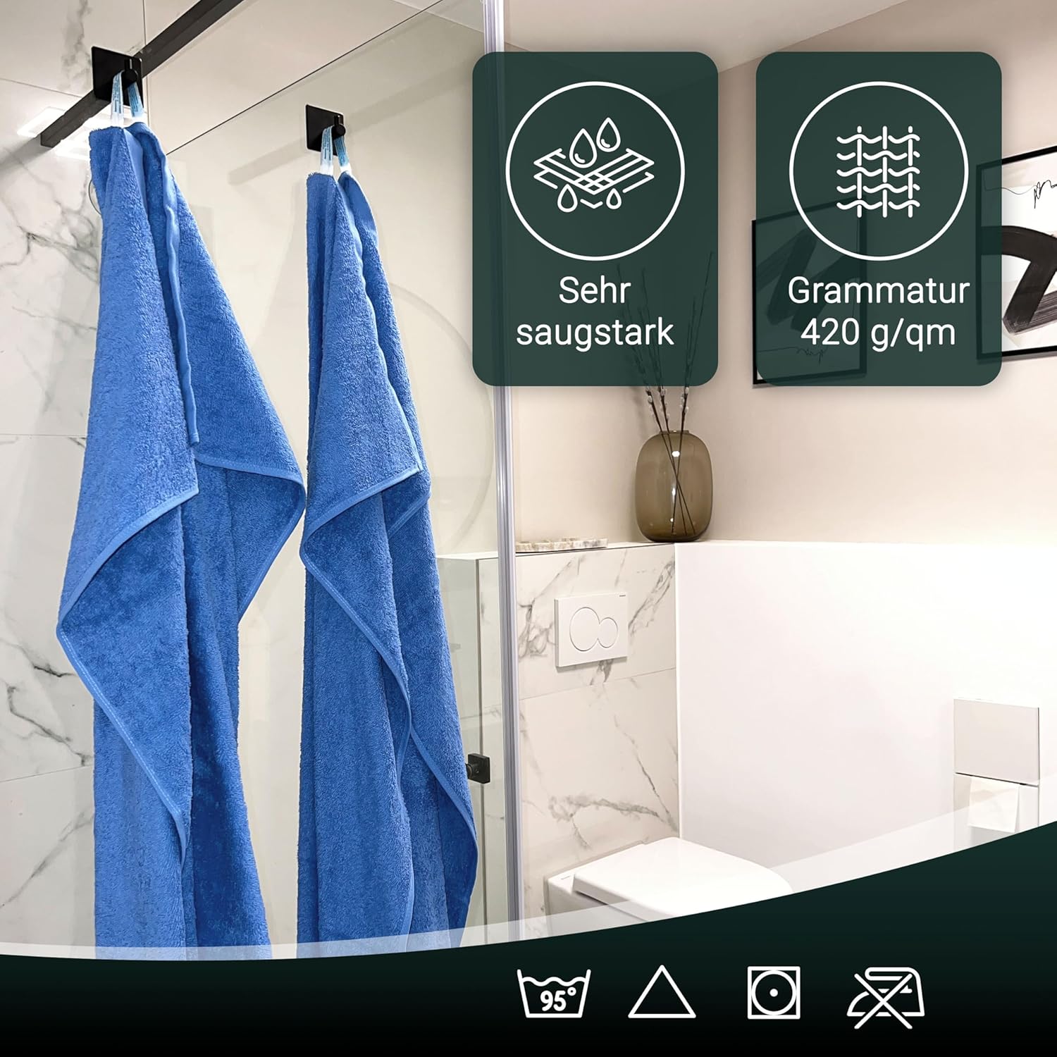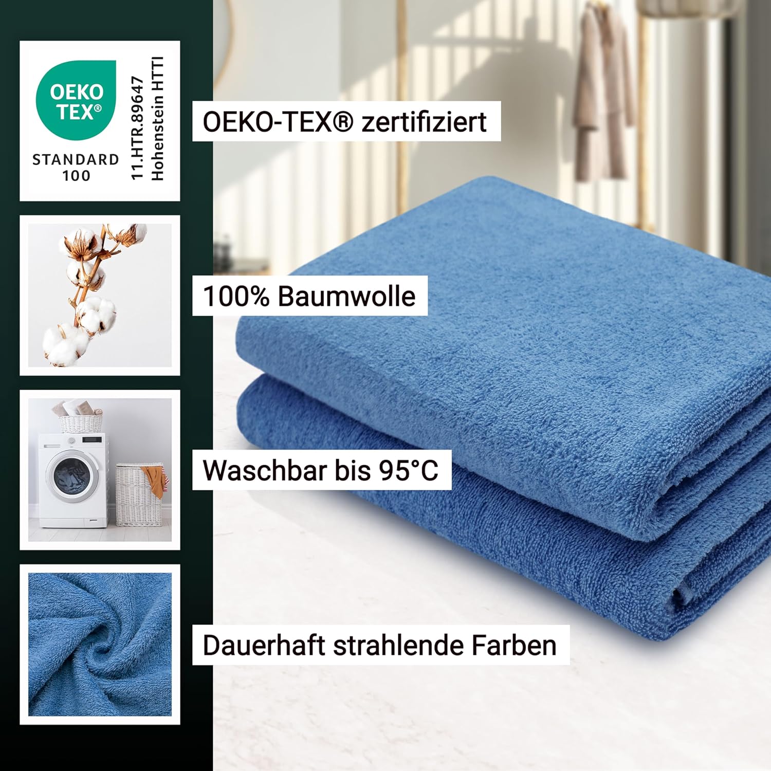 Индантреновият цвят гарантира на кърпите за гости най-високи стойности за устойчивост на цветовете и най-добра стабилност на цветовете, те могат да се перат до 95°C и дори са устойчиви на варене и хлор.