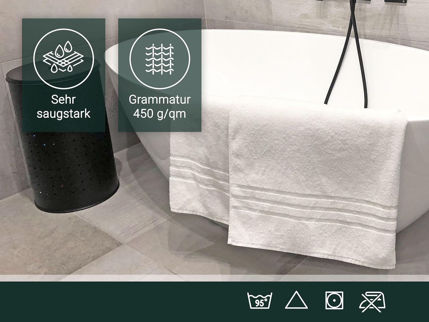 Петната нямат шанс с тези кърпи за миене. Кърпата, продавана милиони пъти в хотелската зона, е лесна за почистване, може да се пере до 95°C, устойчива е на варене и може да се суши в сушилня. Серията Amalfi се предлага в много други размери. От размер приблизително 50 x 100 см, кърпите имат красив и фин раиран бордюр.
