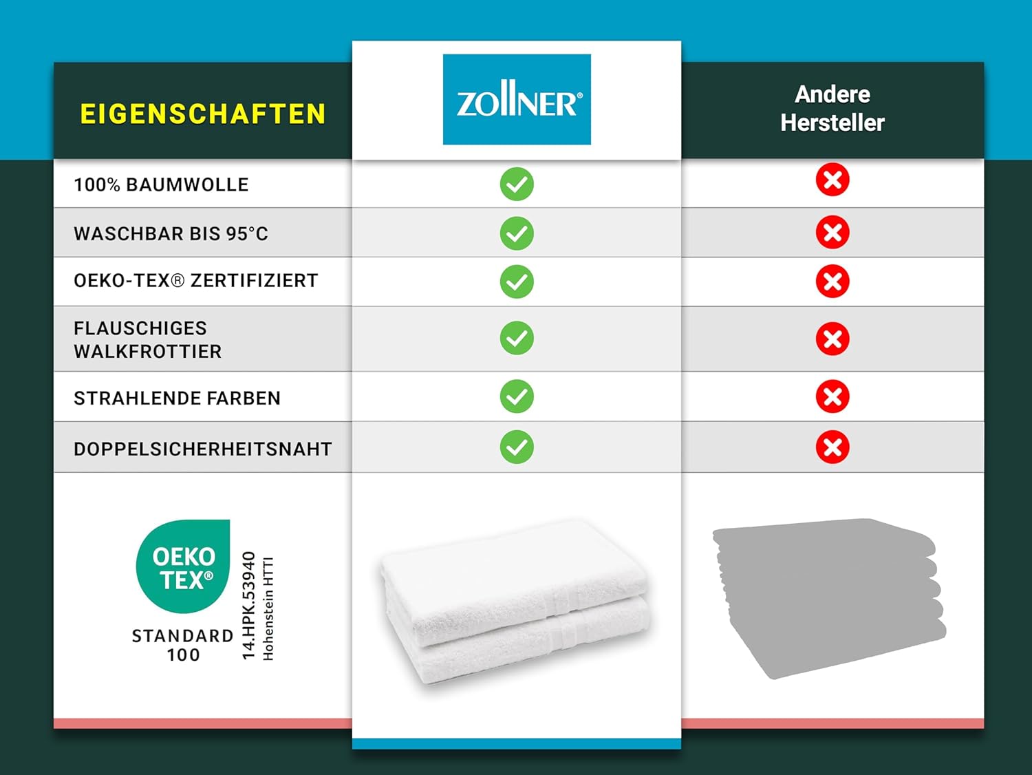 Марката Zollner е синоним на най-високо качество на текстила. Продуктите на Zollner се използват милиони пъти ежедневно в хотели, гастрономия и клиники и са една от водещите марки в тези индустрии в Германия. Възползвайте се от продуктите на Zollner у дома.