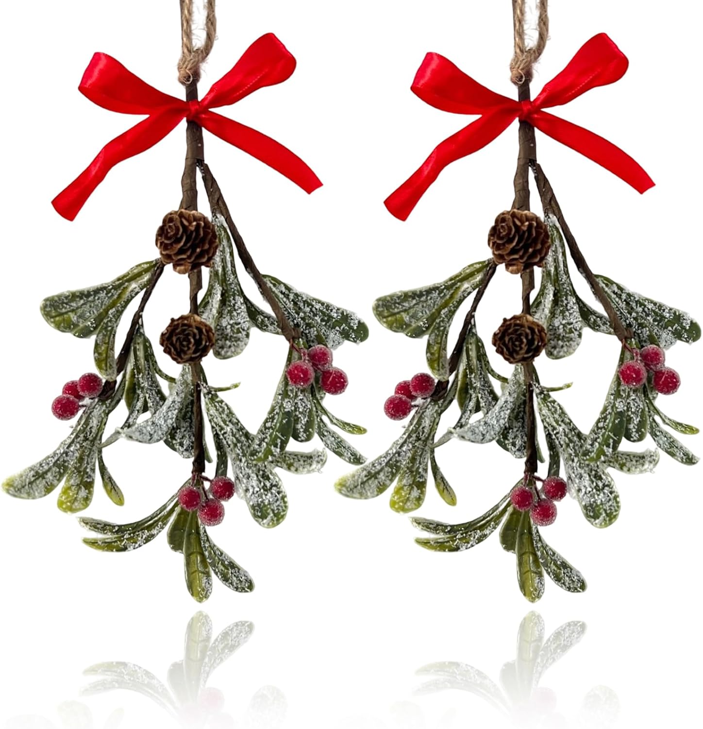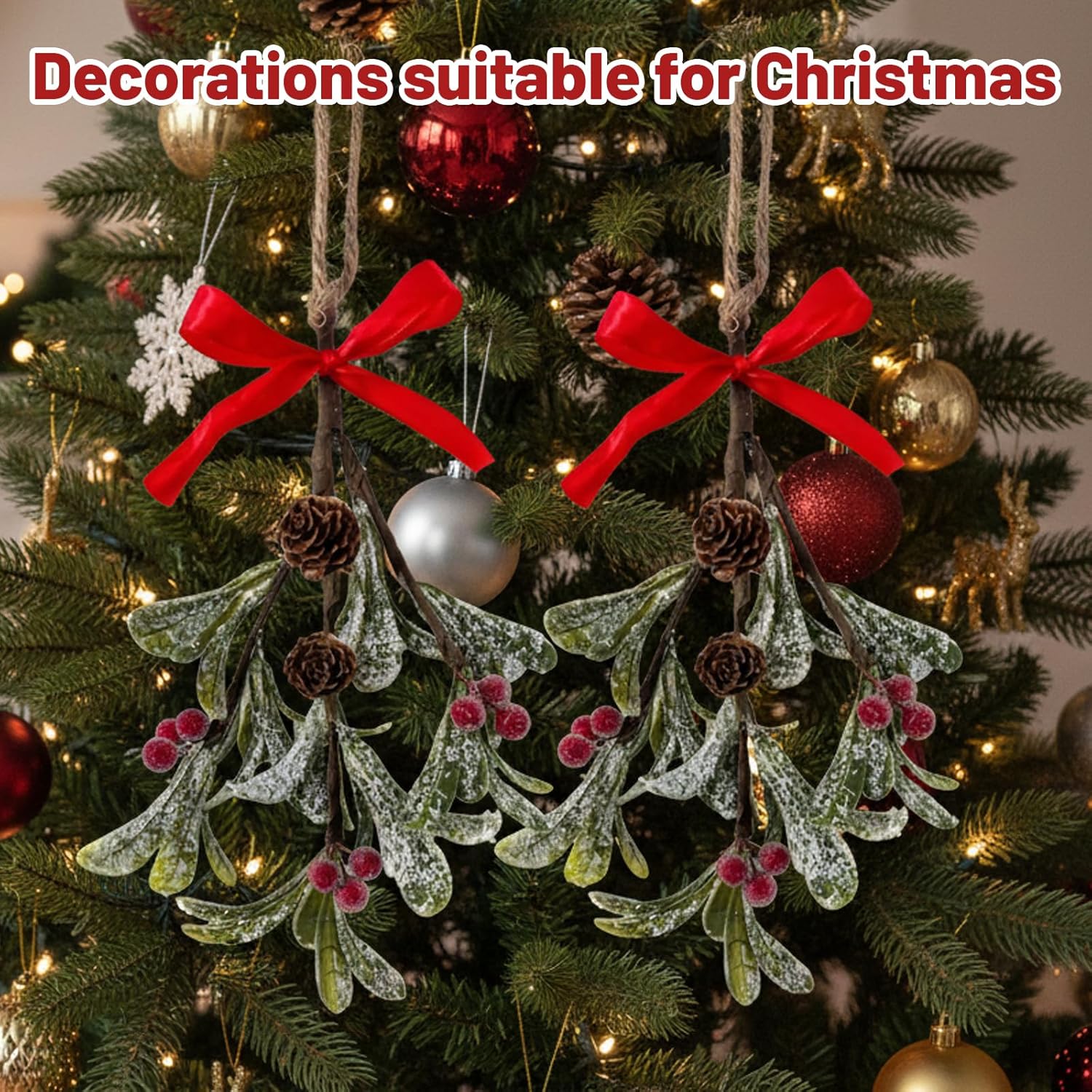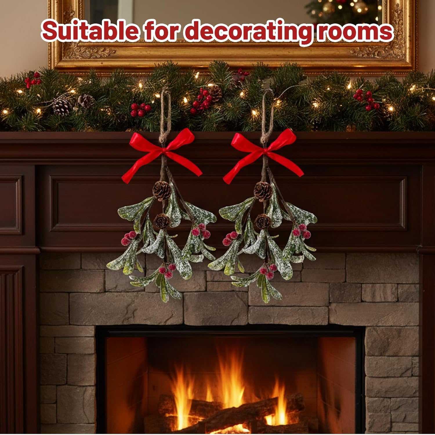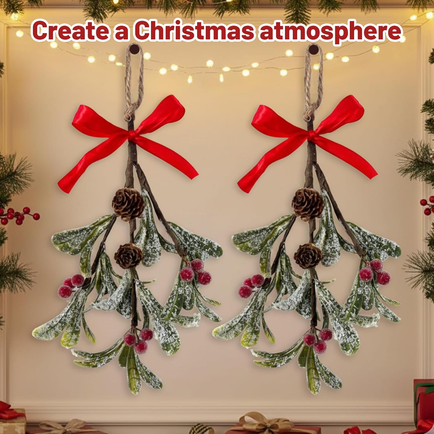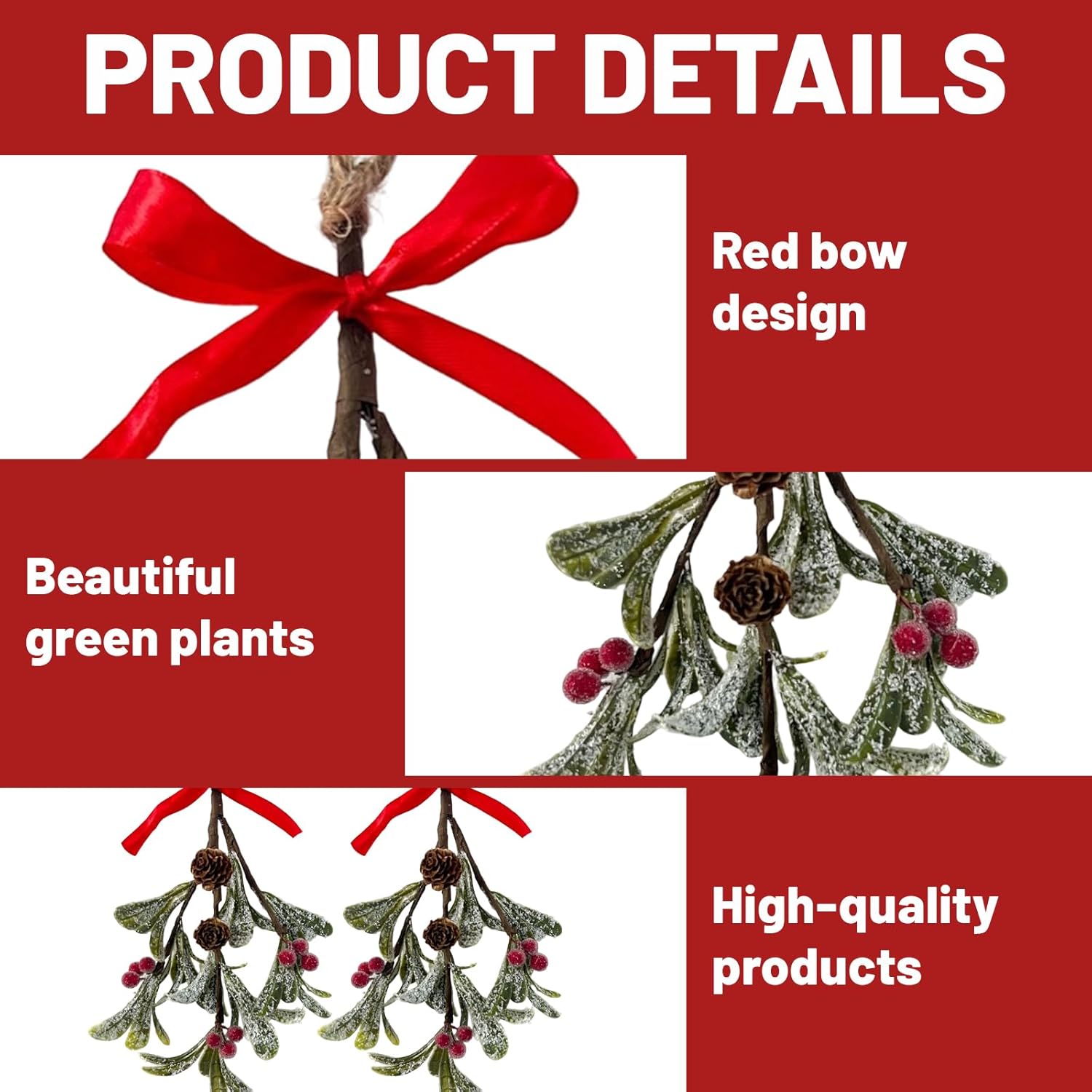 Имелът е изработен от здрав PE материал и желязна сплав, което гарантира дълготрайност и стабилност. Зелените листа, червените плодове и боровите шишарки изглеждат измамно истински и добавят естествен чар към вашата декорация. Червената панделка допълва празничния дизайн.