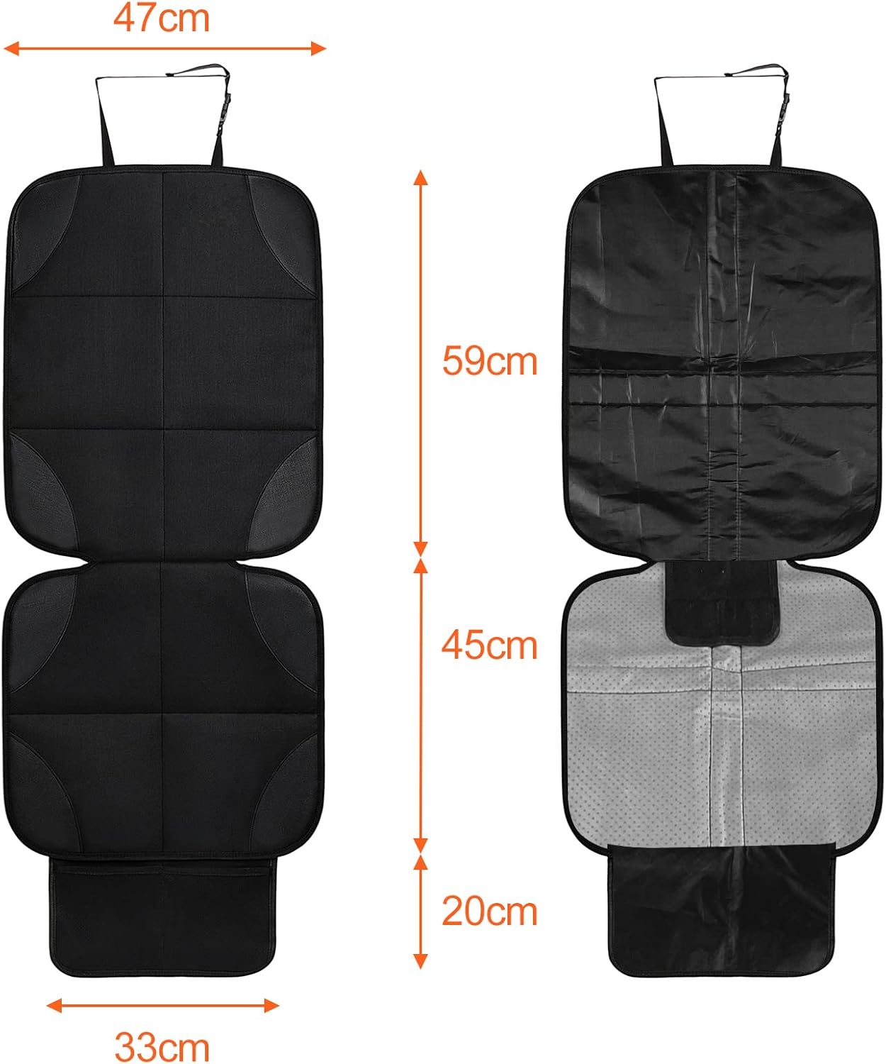 • Универсален протектор за автомобилна седалка: калъфът за автомобилна седалка е съвместим с Isofix, пасва на повечето автомобили. Размери на седалката: 59*47 см, облегалката: 45*47 см, мрежестите джобове са 20*33 см. Калъфите за автомобилни седалки са чудесен начин да освежите колата си и да удължите живота ѝ.